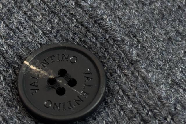 25 New Valentino grey knitted cardigan with a classic V-neck design and neat but