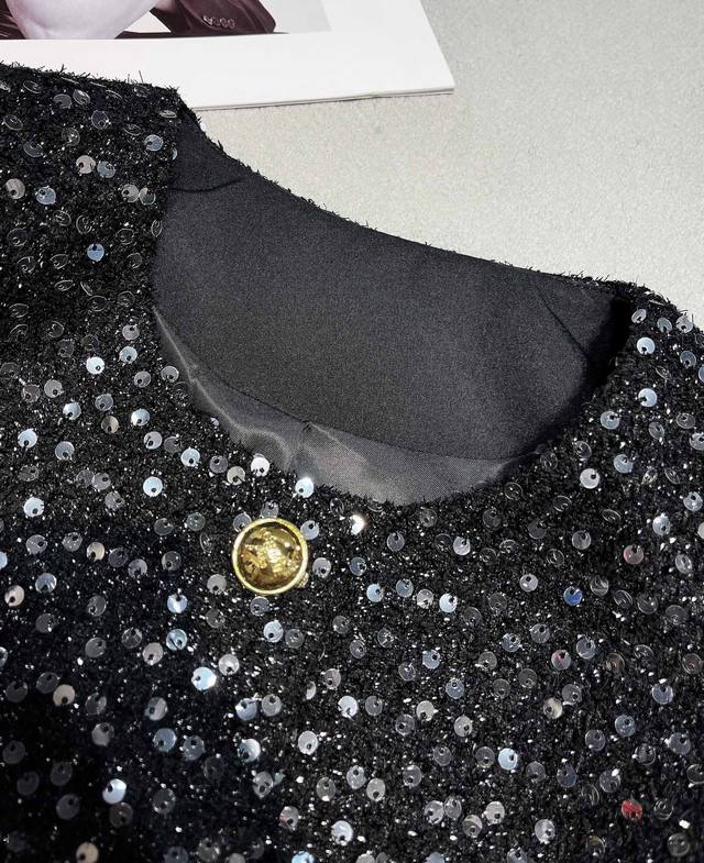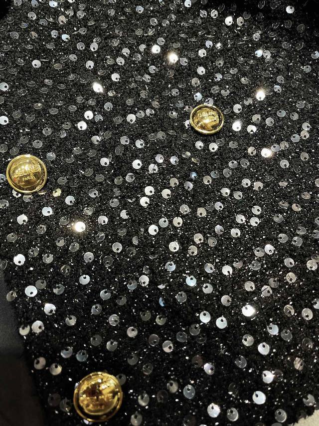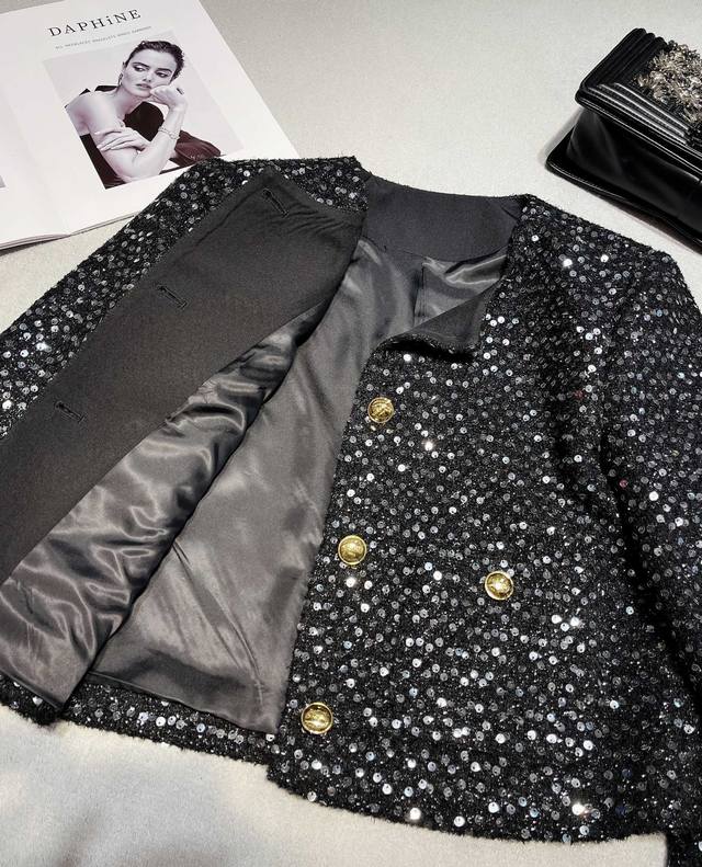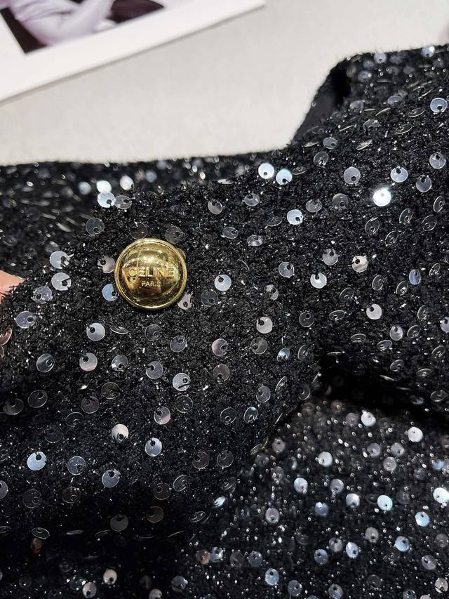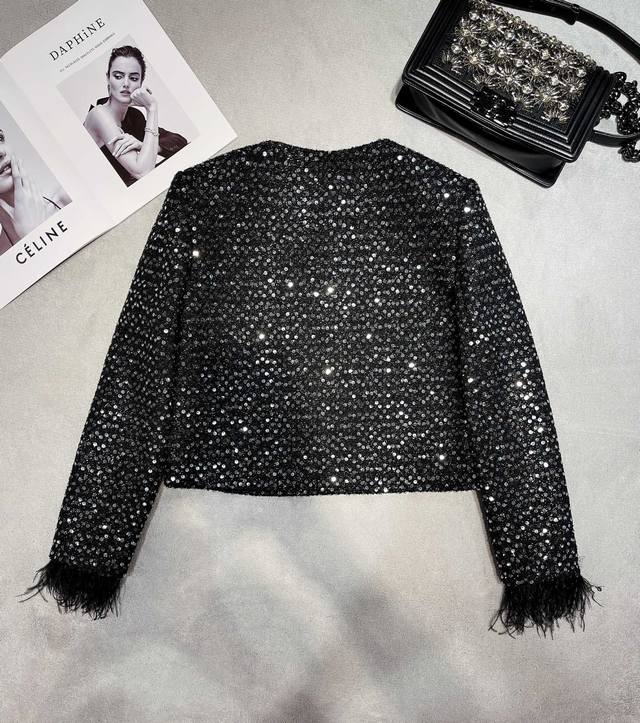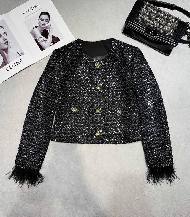 25Aw Celin* High-Quality Sequined Furry Cuff Jacket. This irresistible, scented jacket exudes exquisite elegance, embracing you this season. The regular, slightly loose fit enhances your proportions, and the refined round neckline is flattering! Simple and versatile, it's a truly stylish statement piece! The placket features custom-made, lacquered metal buttons with a logo, adding detail and a stylish, sophisticated feel. The custom-made, transparent sequined fabric adds a touch of elegance and sophistication to the scented vibe. From the design to the color palette, this scented jacket is incredibly beautiful! The cuffs are hand-sewn with flamingo fur, creating a meticulously detailed, durable finish that's sure to stay put, adding a touch of sophistication to the design. It creates a vintage oil painting-like feel and is incredibly flattering! The fabric's refined, high-end quality and refined design exude a gentle aura. This style is a hit, with a high reorder rate as soon as it launched! Highly recommended, this is an exclusive, exclusive, and bestseller.