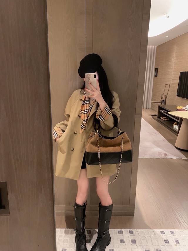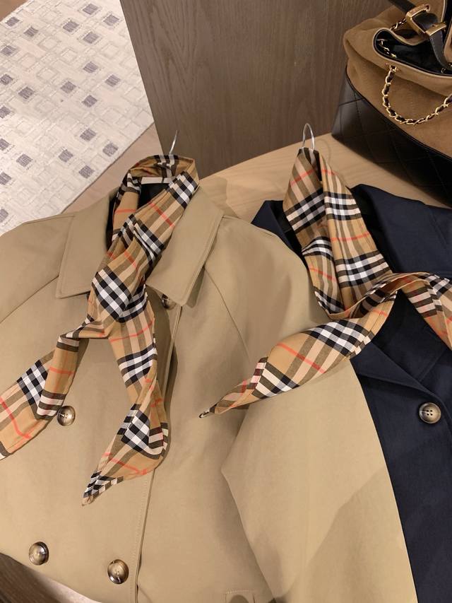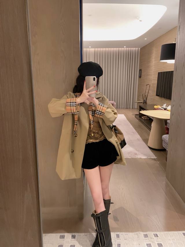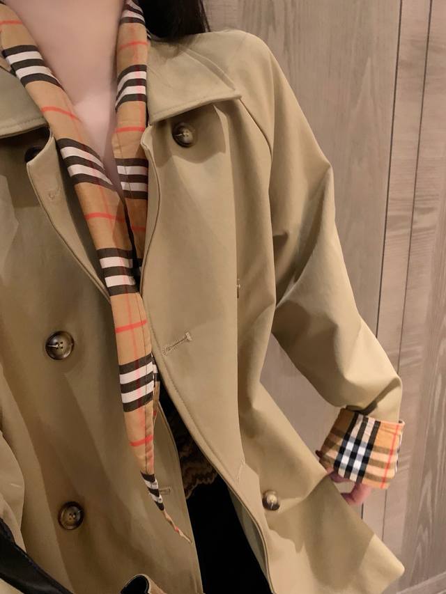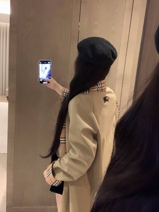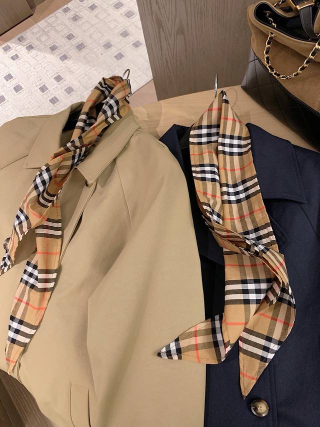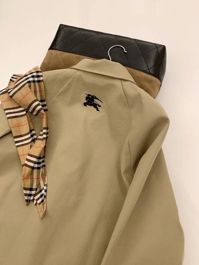 Burberr* Early Autumn New Exquisite Embroidery Windbreaker Jacket Cuffs Splicing Classic Plaid Fabric Sml