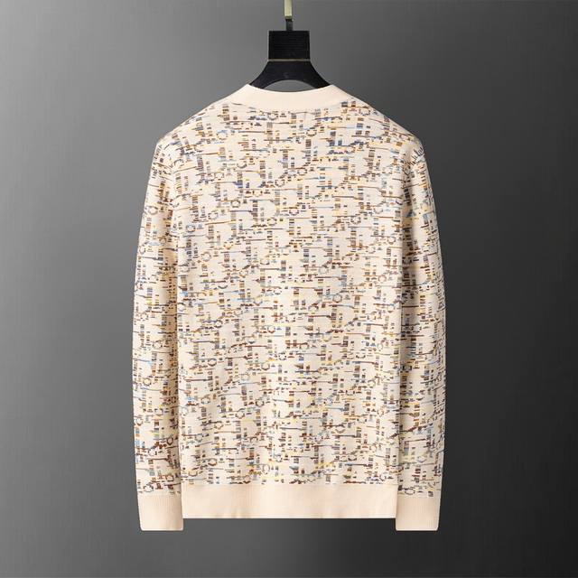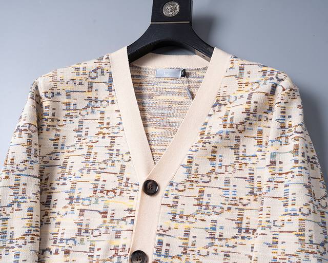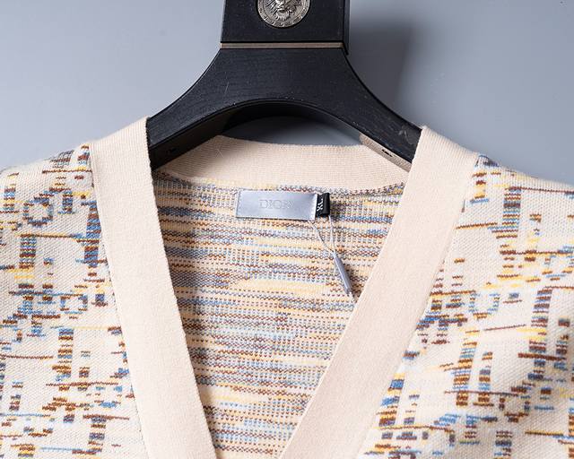 2025 Autumn/Winter New Cardigan Sweater, same style as official website, all-over gradient letter design, fashionable, high-end and elegant, thickened for comfort and warmth, sizes M-3XL, apricot color (