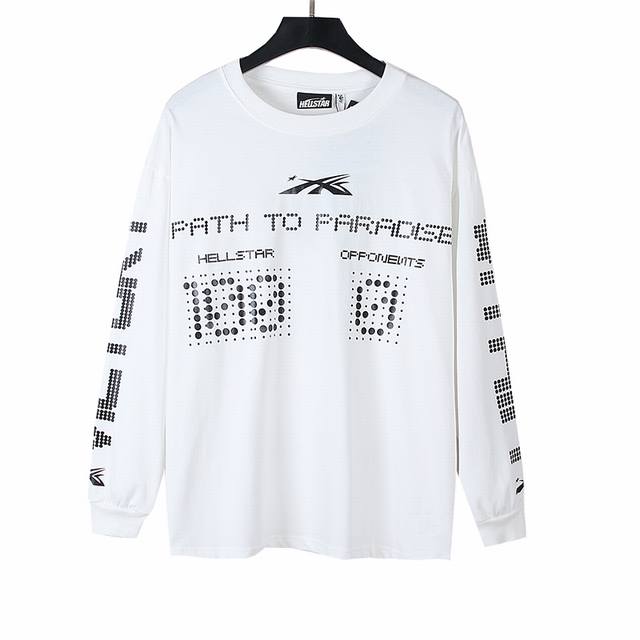 557# Real Shot Hellstar High Street Fashion Cotton Loose Fit Long-Sleeve T-Shirt Fabric: 270g 32-count fine cotton double yarn pure cotton Color: White Sizes: S, M, L, XL