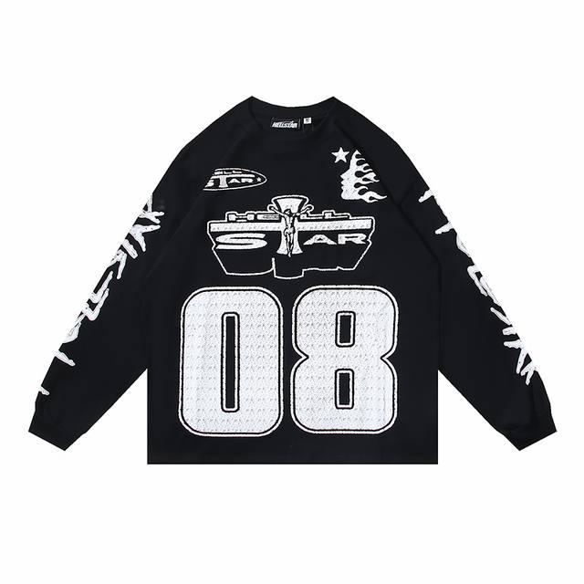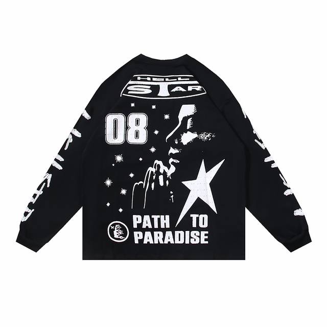 561# Real Shot Hellstar High Street Fashion Cotton Loose Fit Long-Sleeve T-Shirt Fabric: 270g 32-count fine cotton double yarn pure cotton Color: Black Sizes: S, M, L, XL