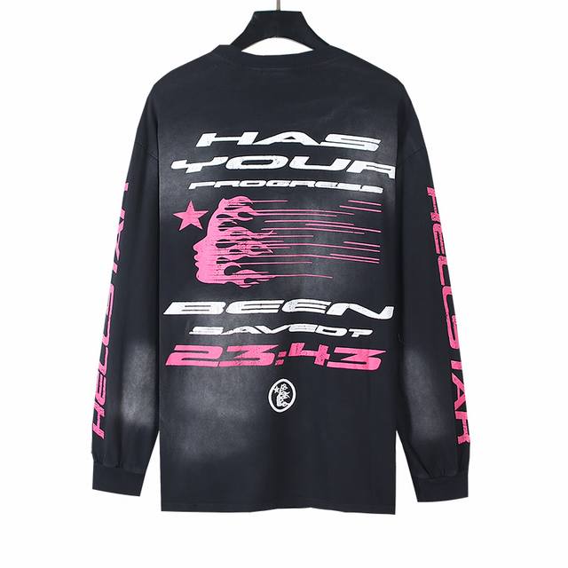 652# Real Shot Hellstar Distressed Washed Cotton Loose Fit Long-Sleeve T-Shirt (