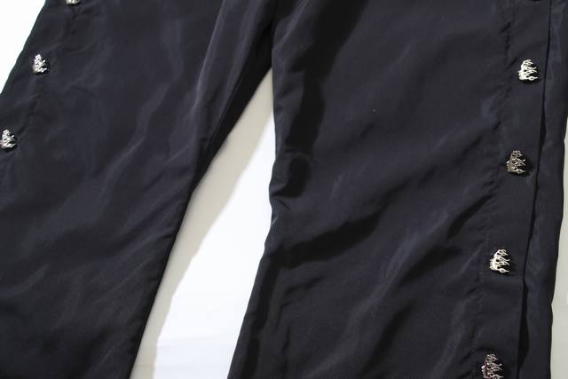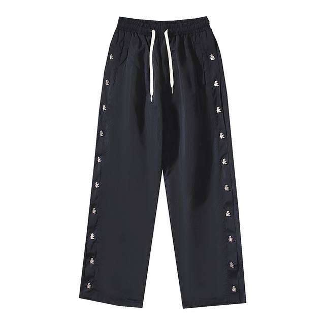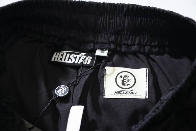 722# Real shot of Hellstar American trendy brand casual sports pants with side buttons. Color: Black. Sizes: S, M, L, XL.