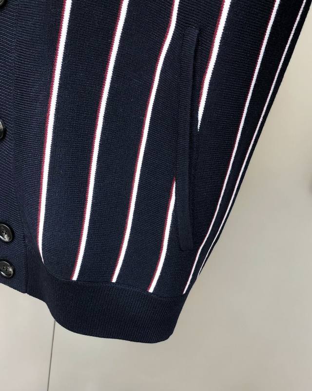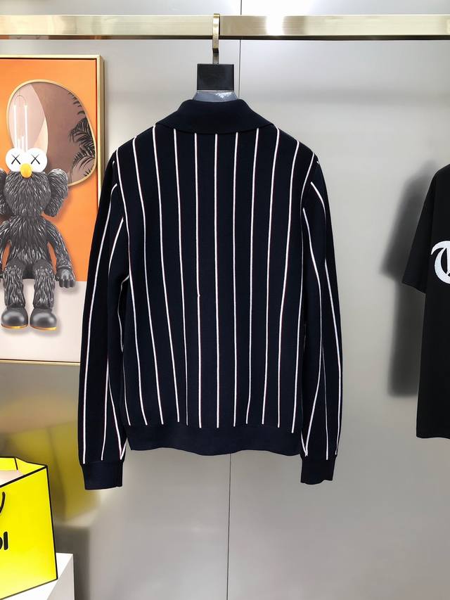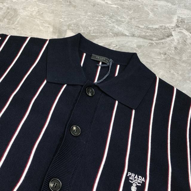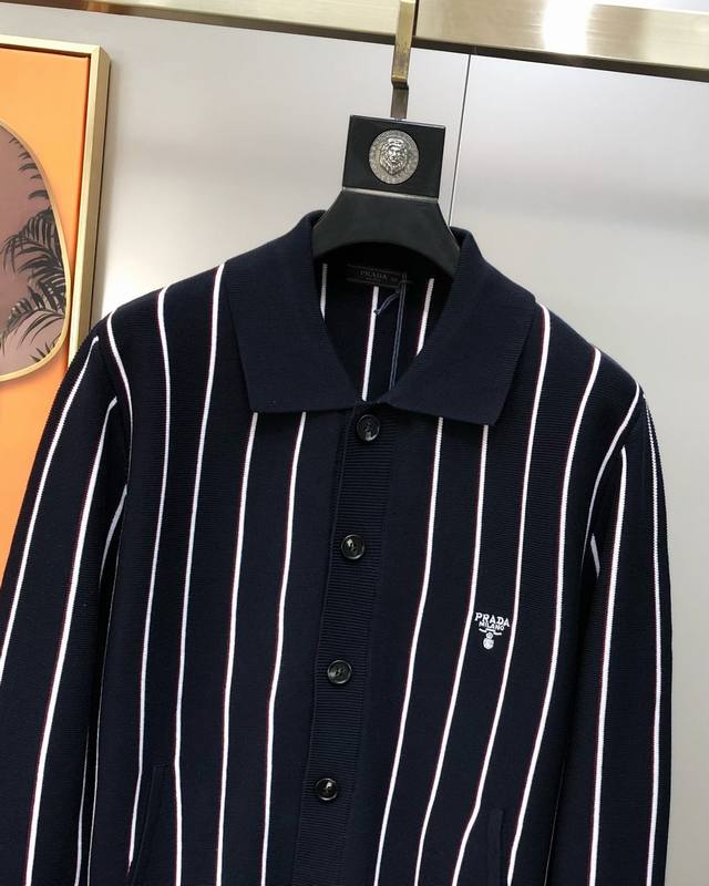 Ada Prada 2025 New Men's Original Knitted Cardigan Sweater Collared Wool Sweater Jacket, High-Quality Version, Popular Style, Fashionable and Versatile, Blue and White Striped Vertical Stripes, Embroidered Letter Logo Design on Chest, Custom Imported Long-Staple Cotton Merino Wool Fabric, Custom Original Hardware Accessories, Soft and Delicate, Superior Warmth, Easily Highlights Temperament, Versatile and Slimming! The fabrics and factories we choose are the same as those used by top brands. Fine workmanship, very handsome on the body. Sizes: M-2XL. Largest size can fit around 190 lbs. Please provide your height and weight when ordering. Ships the next day. Navy Blue