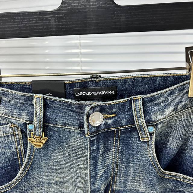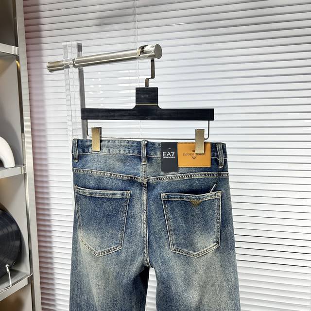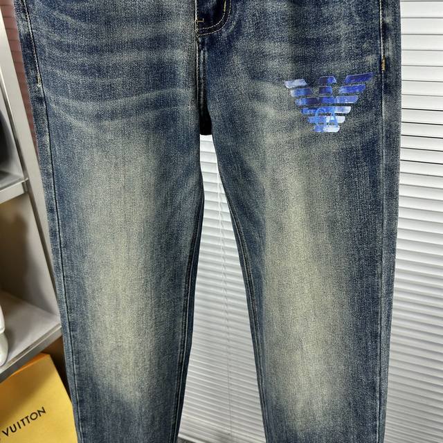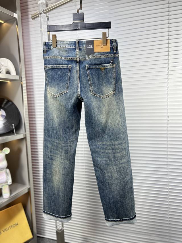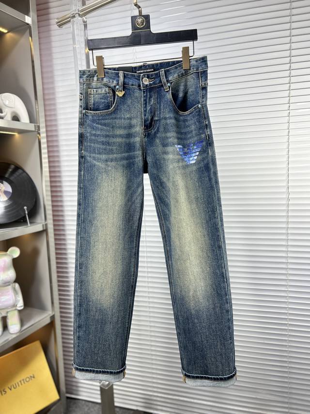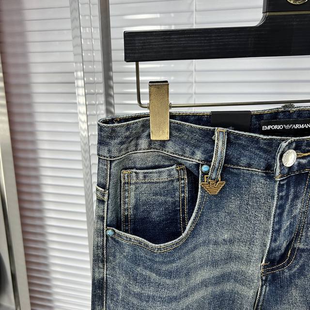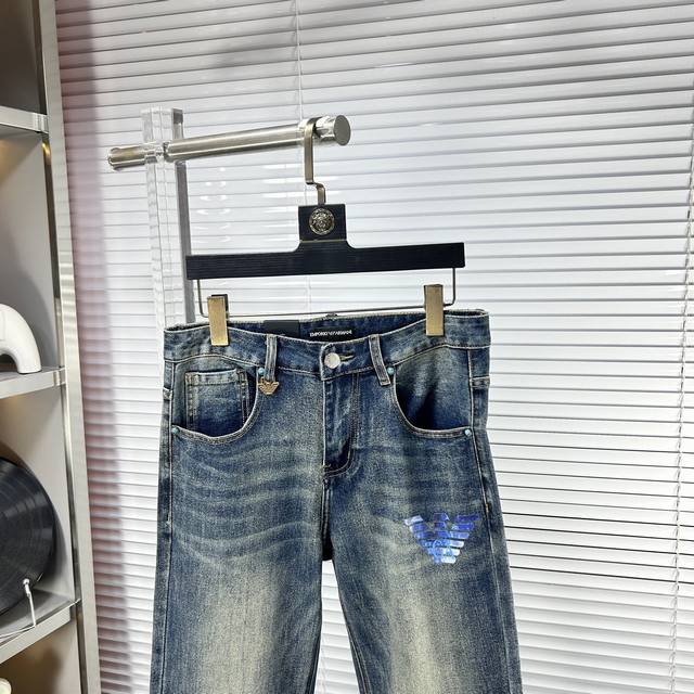 Armani SS25 Autumn/Winter New Men's Jeans - Excellent elasticity fabric. Exclusively available, same style as the official website. Fashionable and elegant, made with a natural yeast wash process, selected imported heavyweight denim fabric, adorned with boutique hardware, genuine leather tag, and exquisite stitching. A must-have. Sizes M: 29-38 (No 37