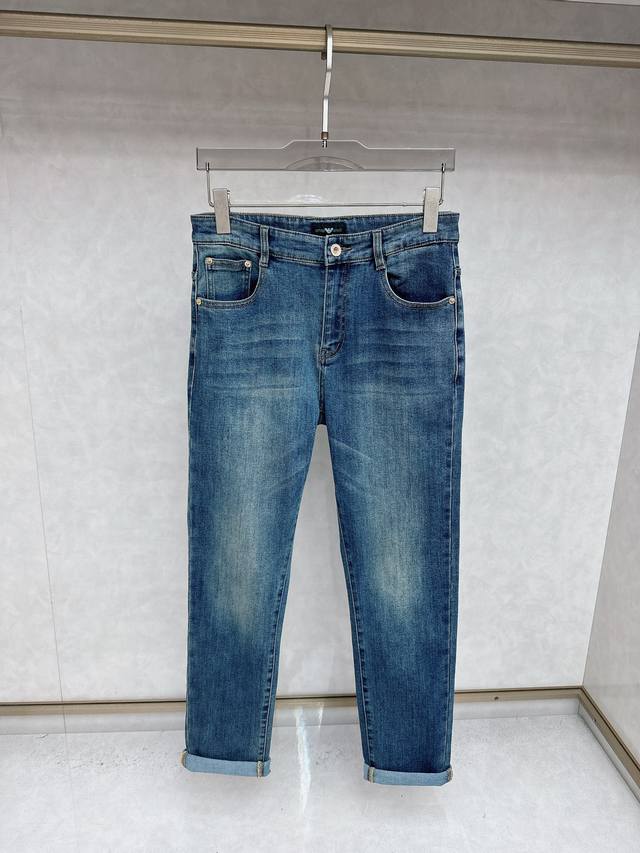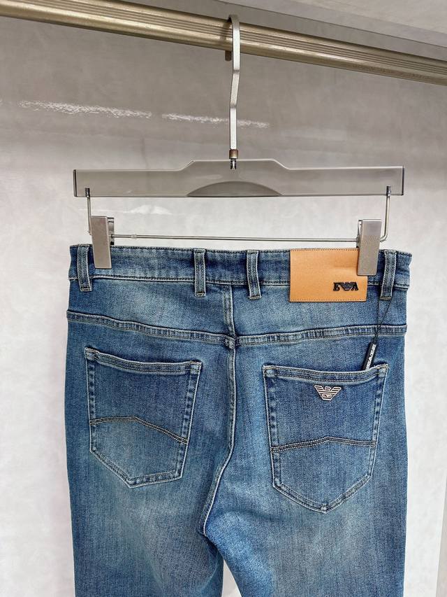 Armani's latest men's jeans collection for Early Autumn 2025! Made with heavy-duty washed denim fabric, this custom-made material is softer and more comfortable than regular denim. The entire pair of jeans features a double-wash process, resulting in a comfortable feel, exceptional fineness, and top-notch breathability. All hardware and brand logos are custom-made using top-quality materials. The fabric has excellent elasticity and is incredibly comfortable! The understated design is simple and stylish. Sizes: 29-40 (