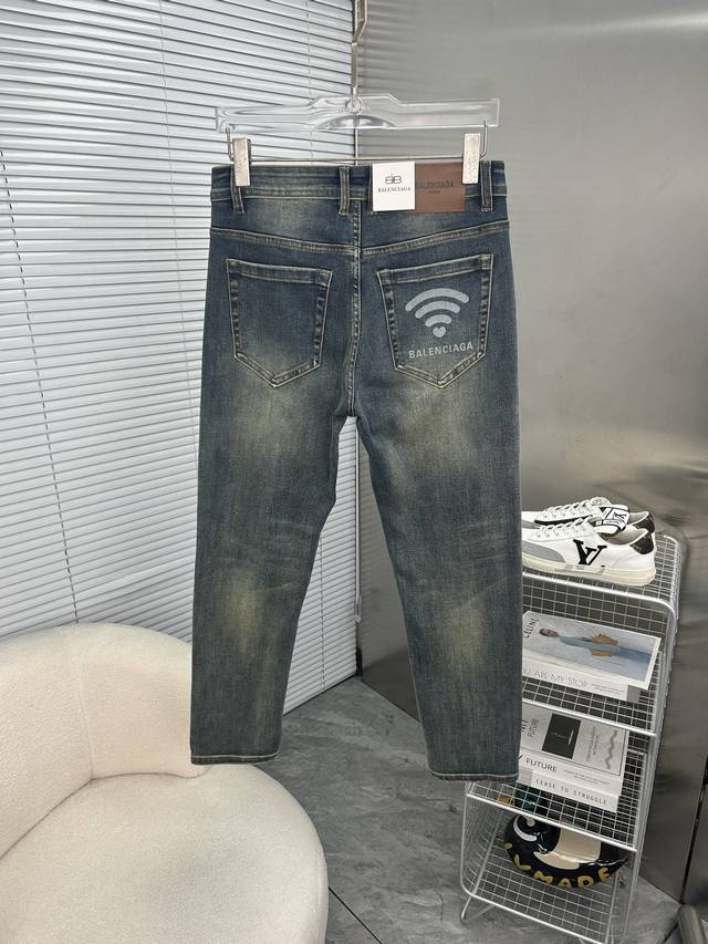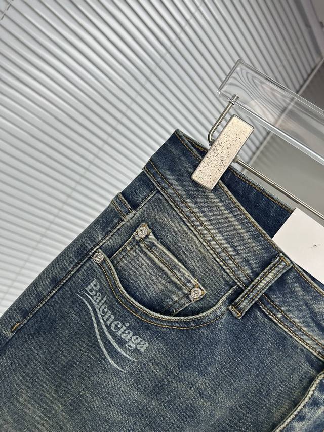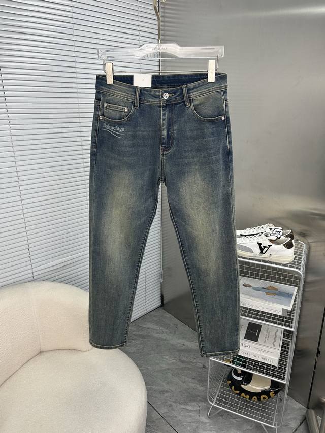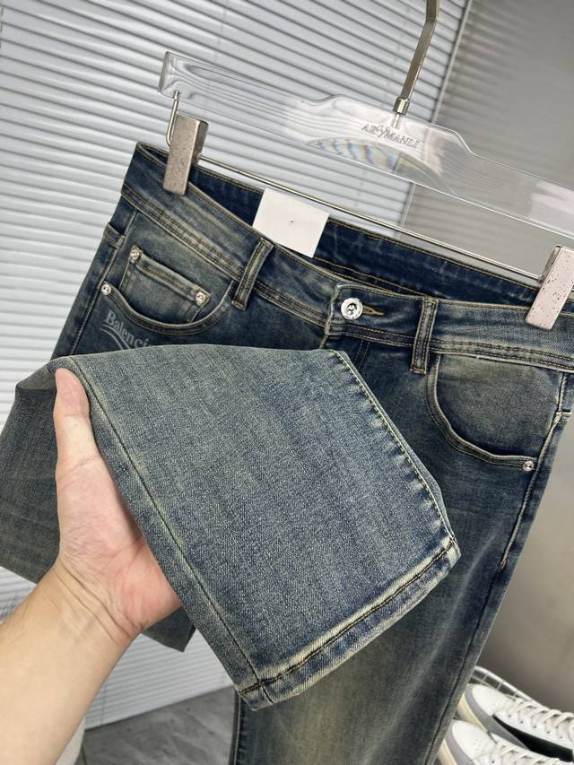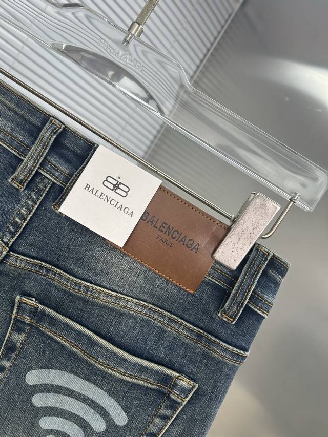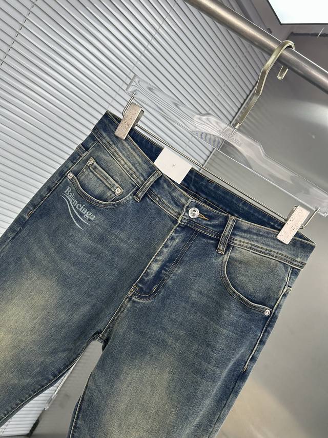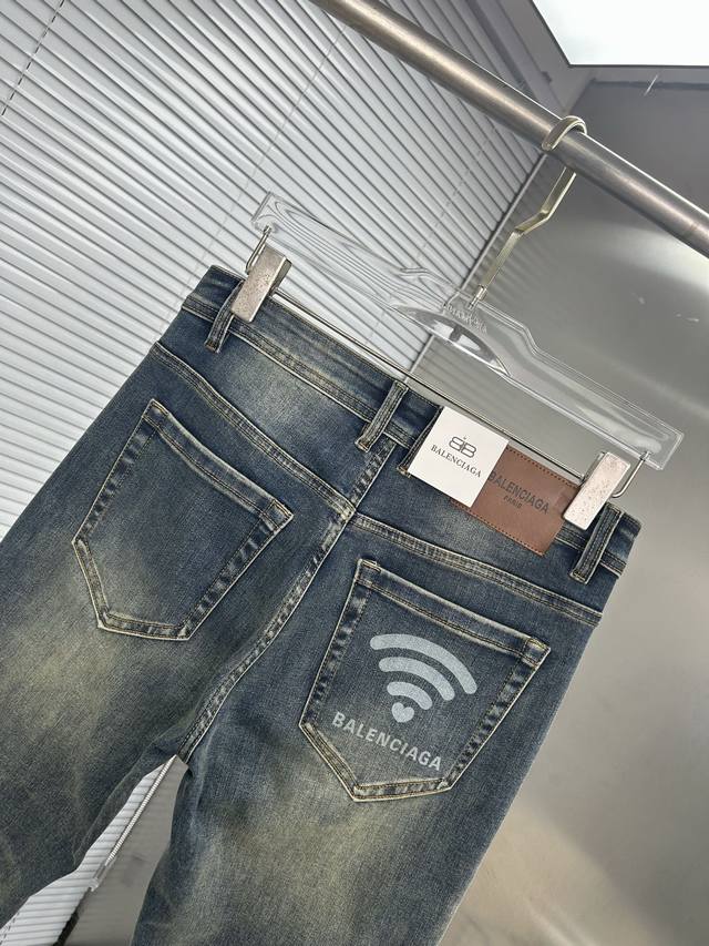 Balenciaga 2025 New Men's Jeans - Excellent elasticity fabric. Exclusively available, same as online store. Stylish, elegant, and meticulously crafted design. Made with premium imported heavyweight denim using a natural yeast wash process, featuring designer hardware, genuine leather tags, and exquisite stitching. A truly high-end brand item. Sizes: 28-38. Ships the next day.