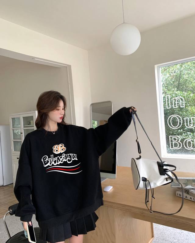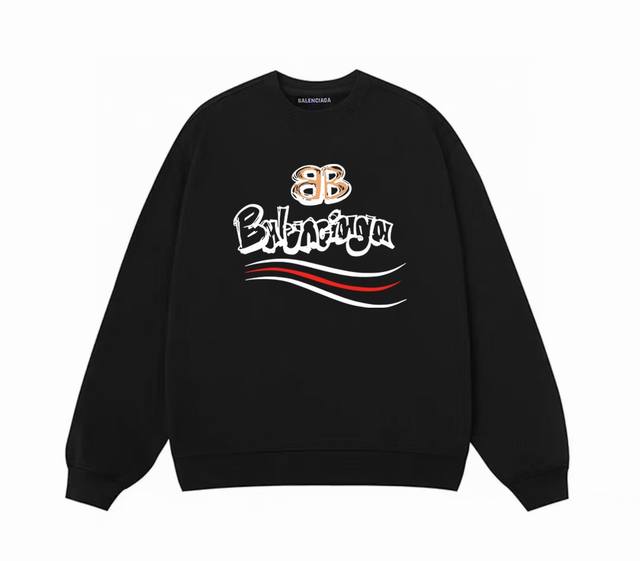 Balenciaga Coca-Cola Bb Spring/Autumn Crew Neck Sweatshirt. Original fabric, high-quality version, same style as popular online celebrities. Made with premium Xinjiang long-staple cotton, pure cotton fabric, PU direct-injection printing logo, custom dyeing process. Very comfortable to the touch, super versatile and stylish sweatshirt. Complete with all three labels, not the ordinary version on the market, quality absolutely guaranteed. Colors: Black, Navy Blue. Sizes: M-XL. M: Length 70cm, Chest 115cm, Shoulder 53cm, Sleeve 66cm. L: Length 72cm, Chest 120cm, Shoulder 55cm, Sleeve 68cm. XL: Length 74cm, Chest 125cm, Shoulder 57cm, Sleeve 70cm.