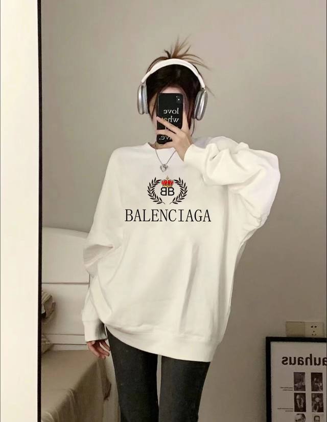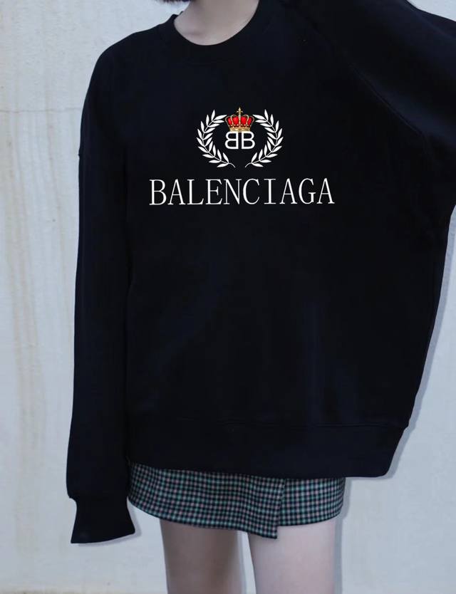 Balenciaga Crown Wheat Ear Spring/Autumn Crew Neck Sweatshirt. Original fabric, high-quality version, same style as popular online celebrities. Made with premium Xinjiang cotton fabric, PU direct-injection printing logo, custom dyeing process. Very comfortable to the touch, super versatile and stylish sweatshirt. Complete with all three labels, not a common market version, quality absolutely guaranteed. Colors: Black, White. Sizes: M-XL. M: Length 70cm, Chest 115cm, Shoulder 53cm, Sleeve 66cm. L: Length 72cm, Chest 120cm, Shoulder 55cm, Sleeve 68cm. XL: Length 74cm, Chest 125cm, Shoulder 57cm, Sleeve 70cm. Note: Manual measurement may have a 1-3cm error.