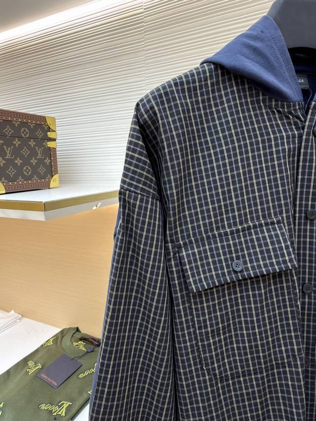 Balenciaga Signature Check Patchwork Hooded Jacket Original: Purchased from 8838 Item Number: 1680863-B05 Fabric: Combed Cotton Craftsmanship: Pre-cut Fit: Loose Fit Weight: Approx. 570g Sizes: 1-2-3-4 Description: Custom-woven and dyed fabric, using high-count worsted yarn, with a three-dimensional check pattern formed by precise interweaving of two-color warp and weft yarns. The yarn ratio and tension are strictly controlled to ensure uniformity of the check pattern. 300g knitted fabric base, using a high-weight knitted base fabric, balances crispness and elasticity, ensuring a balance between drape and dynamic comfort. The overall stitching is straight and delicate, the fabric is comfortable and soft, and the color is consistent with other items, allowing for stylish styling and suitable for various occasions. Custom accessories, complete with tags, unisex!