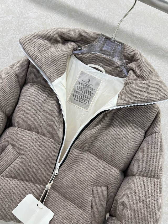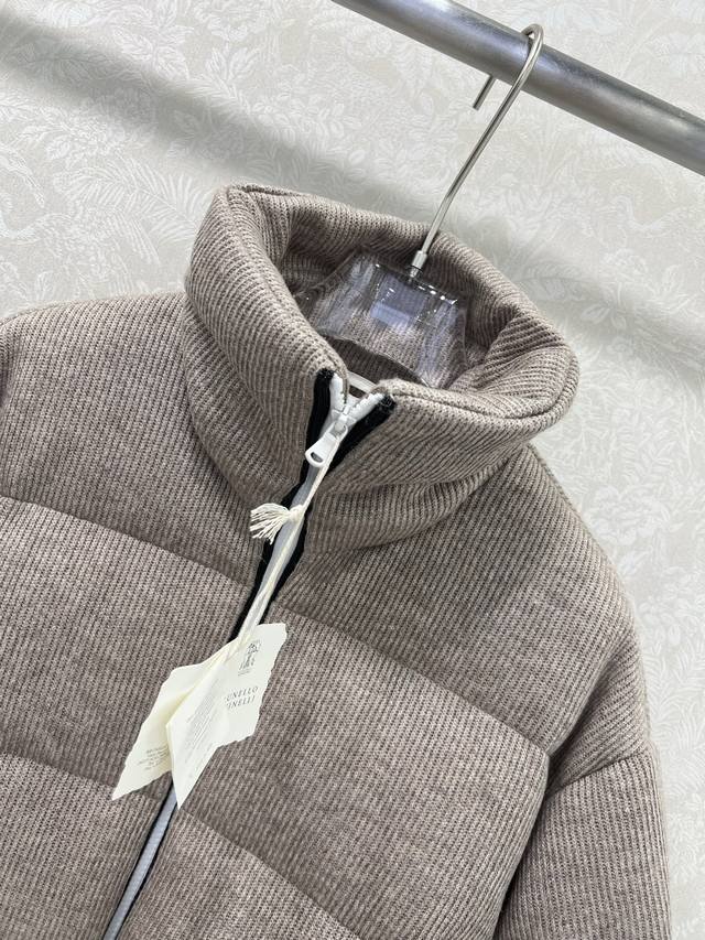 Brunello Cucinell* 2025 New Arrival. Brunello Cucinell's cashmere fabric and white goose down maintain a minimalist style, with no fussy embellishments, perfectly embodying the brand's philosophy. Custom zipper buckle, beaded details on both sides of the zipper, versatile and stylish. A capsule limited edition, classic fit, loose, versatile, and fashionable! Look for our imported 100% cashmere heavyweight yarn and Swiss machine weaving technology, creating a low-key yet luxurious feel! The fit is relaxed and elegant. Classic, flattering, and super slimming. Single color, sizes S, M, D, D.