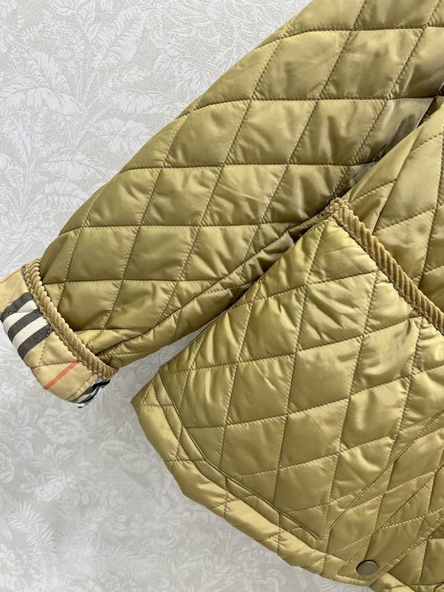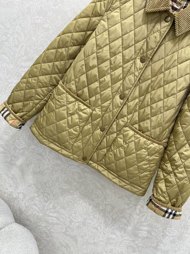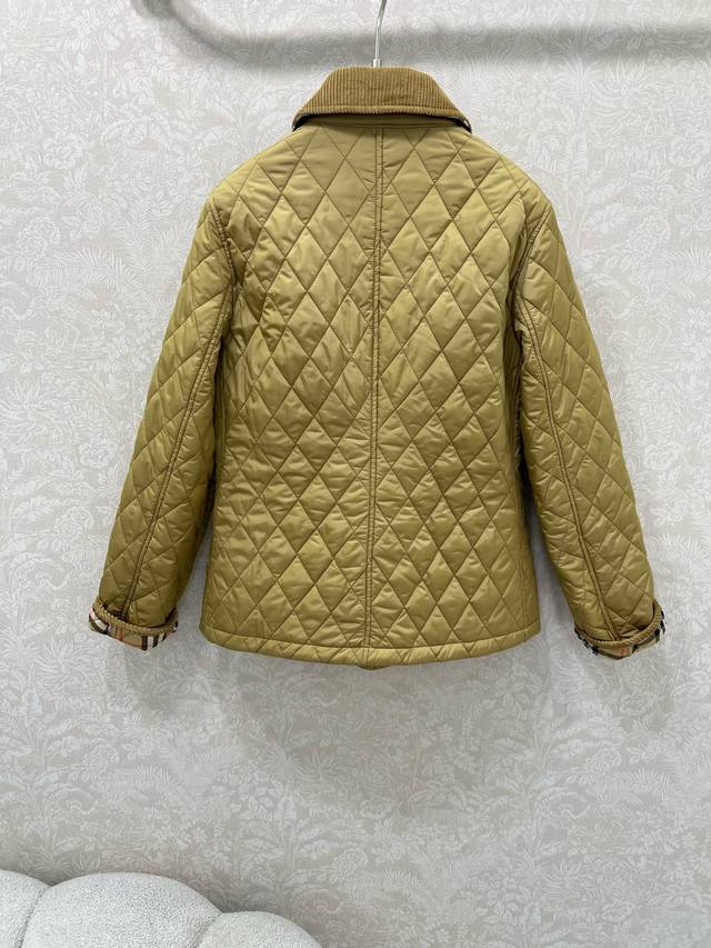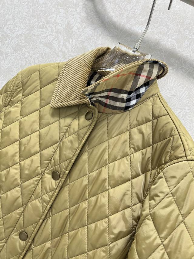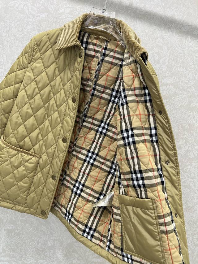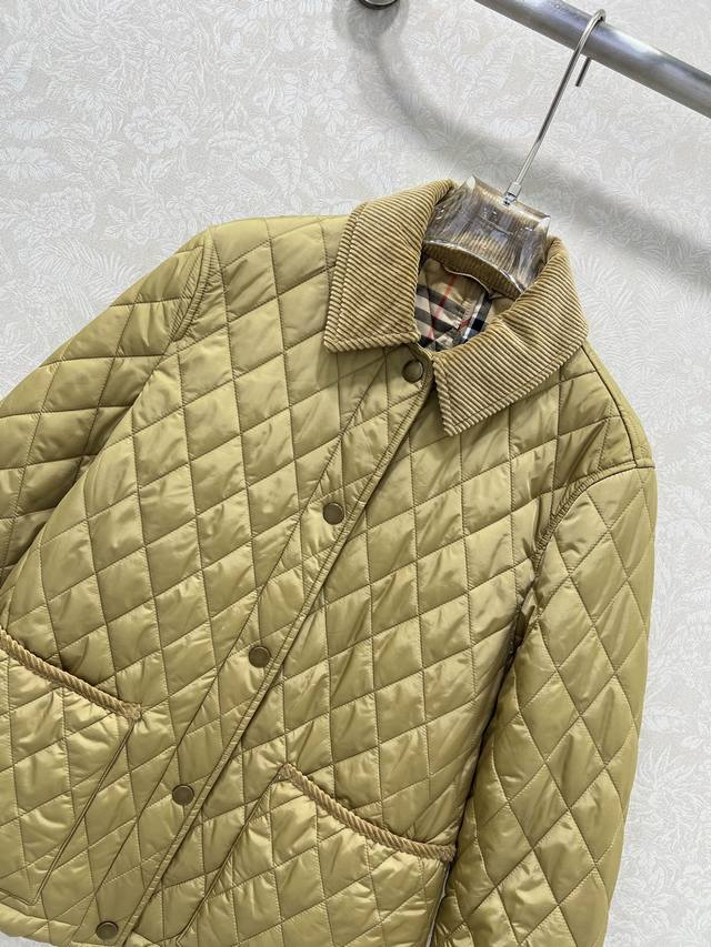 Burber Y25 New Diamond Pattern Mid-Length Cotton Coat! Super High-End Corduroy Collar Cotton Coat with Corduroy Tie Trim at the Cuffs (rollable to reveal the lining), Classic Vintage Check Single-Breasted Design, Classic Style, Plain Check Cotton Coat, Short Jacket, Recycled Polyester Check, Large Pockets, Classic Designer Feel, High Quality! 3 Colors, 5 Sizes: S, M, L, XXL, D, D