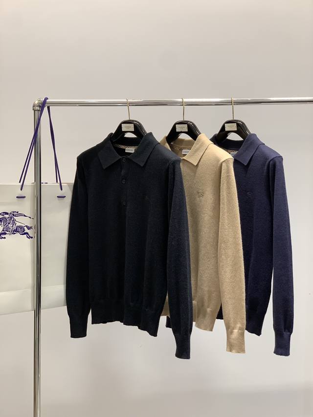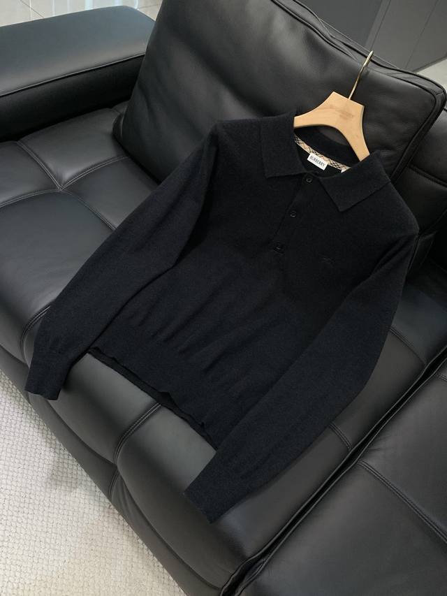 Burberry, 2025 Fall New Arrival, available in boutiques, original factory overrun, stylish and casual collared long-sleeved knit wool sweater, imported original fabric, comfortable and breathable, top-quality embroidered lettering and logo decoration, extremely high-end, comfortable and versatile, looks great on, 3 colors recommended, sizes: S-XXL
