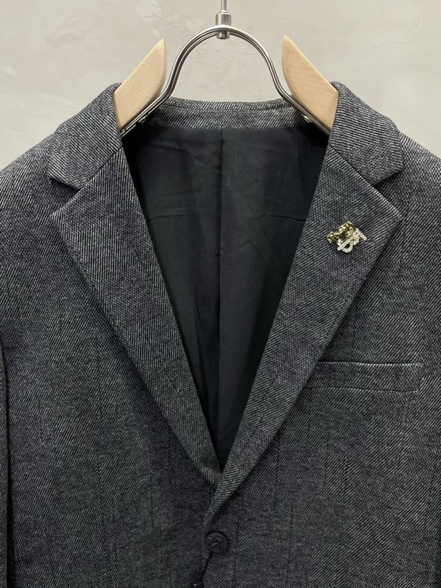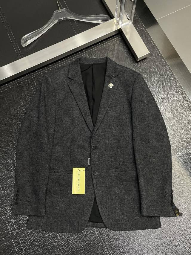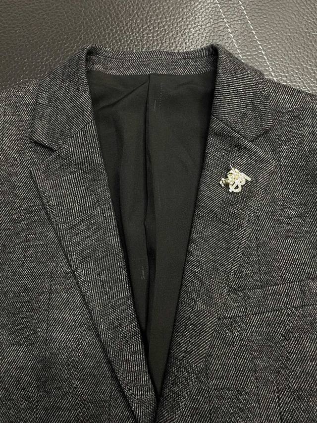 Burberry new suit set, a simple and casual blazer from an export company order. Made with exclusive imported original polyester fiber fabric, it is breathable, soft, and highly warm, with a crisp drape. The stitching is neat and even, and all hardware and accessories are custom-supplied with the logo, indicating high-end quality. This fabric is custom-woven; you simply can't find such high-quality goods from reputable factories. There are no flaws whatsoever. This blazer is a versatile piece that you can always have on hand. Sizes: M-4XL
