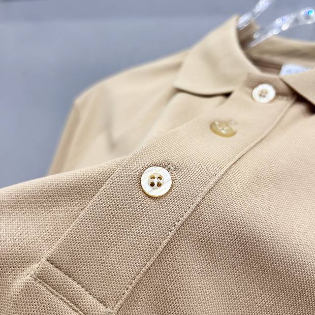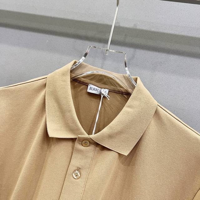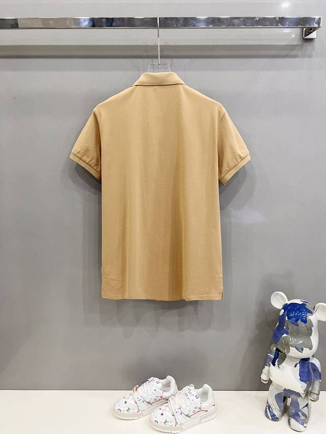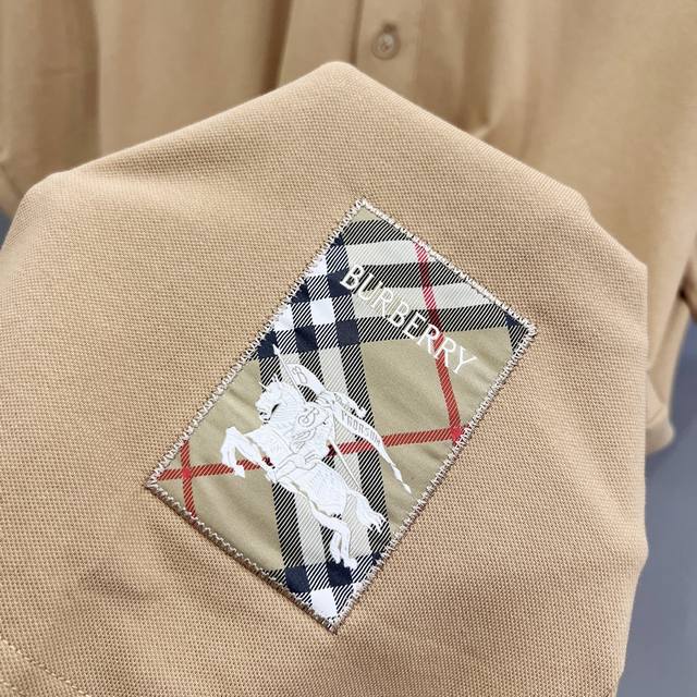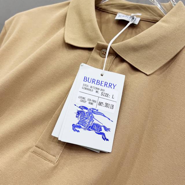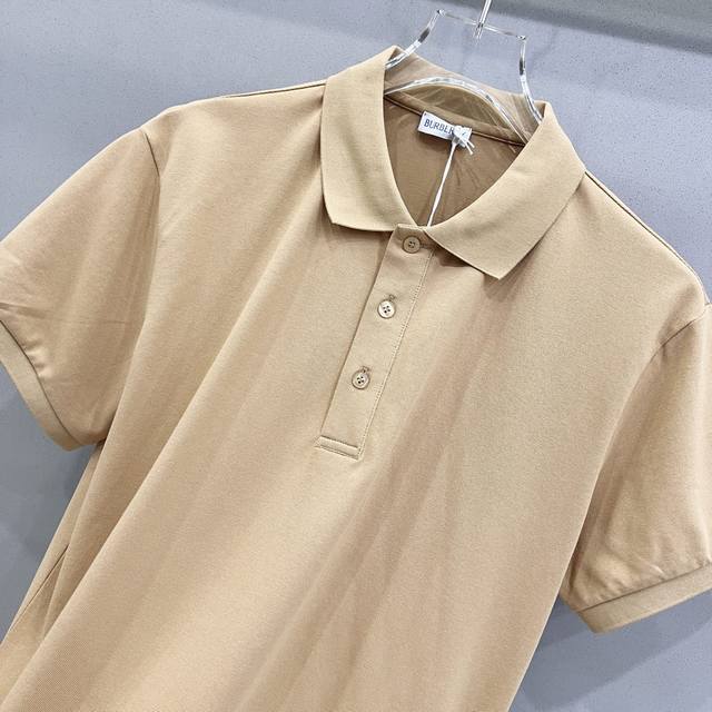 Burberry Polo Shirt with Lapel Collar. Features a simple horse logo patch, label, and nameplate. Officially synchronized, perfect for business use. Stylish, versatile, and trendy. Made with original quality fabric. Includes hangtag, neck label, and wash label. Colors: Black, Apricot, Khaki. Sizes: M-3XL.