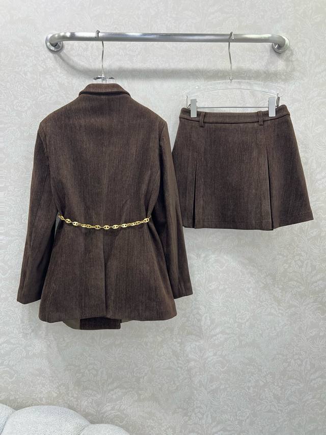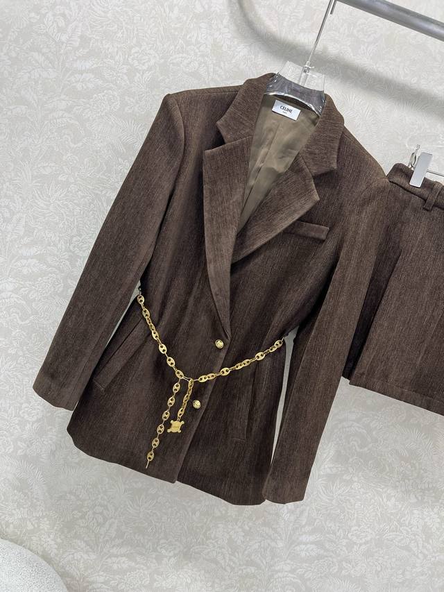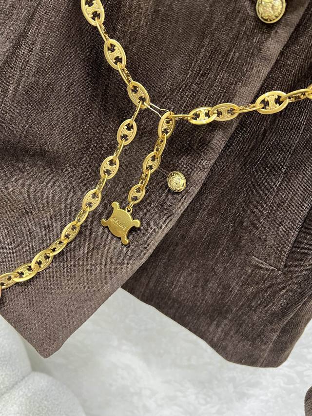 Celin* 2025 New Set Includes Wool Coat and Pleated Skirt. Super popular Maillard color scheme, old-money style. Custom-made suit with Arc de Triomphe hardware waist chain. Casual and chic. The re-blend wool fabric has a substantial feel, exuding a classic, elegant, and sophisticated aura. The pleated A-line skirt accentuates long legs. A set adored by countless bloggers. A well-fitting design that hides flaws and creates a slimming effect. Relaxed and casual, with excellent warmth. Primarily practical and stylish. Sold as a set in single color in sizes S, M, L, D, D.