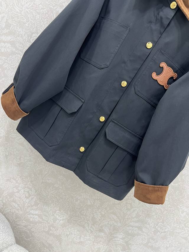 Celin*25 New Corduroy Collar Jacket, Maillard Colors, Single-Breasted, Classic Arc de Triomphe Leather Label. Minimalist yet sophisticated, with a superb silhouette, combining comfort and style. Simple brand logo embellishments add a touch of understated elegance. Whether for active sports or everyday wear, these jackets will make you stand out and easily adapt to different occasions. 2 colors, 3 sizes: S, M, L, D, D