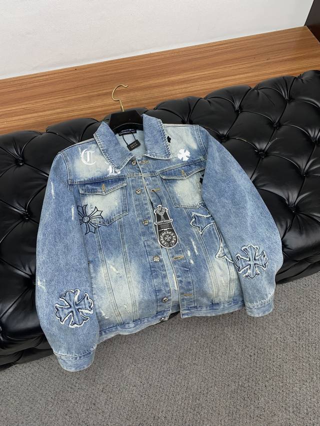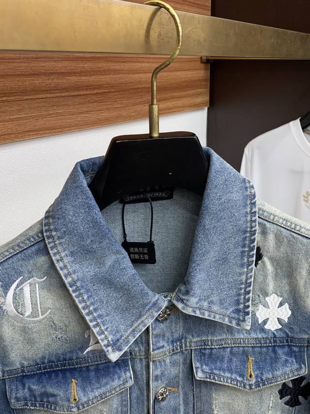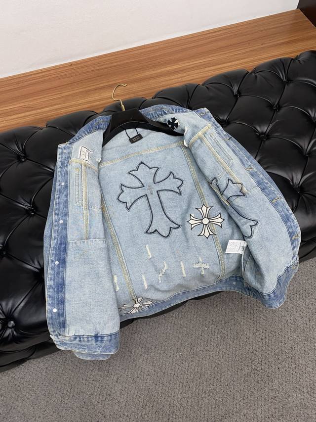Chrome Hearts Fall/Winter Men's Denim Jacket, same style as in boutiques. Perfect condition. Denim jackets are a classic and evergreen staple, a must-have every season, perfectly embodying the aesthetic of Chrome Hearts