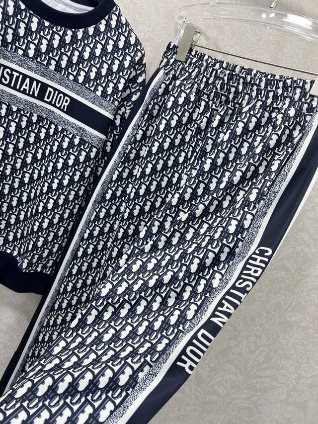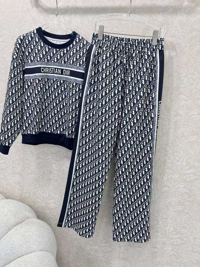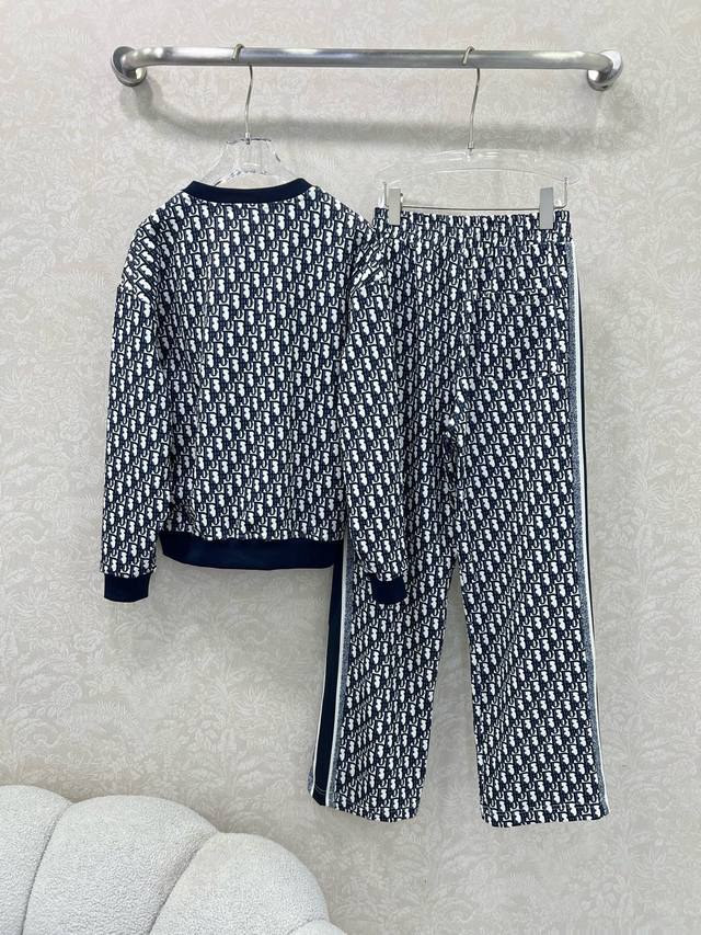Dio*25 New Casual Sportswear Set - Available as a set. The set includes a round neck, long-sleeved, pullover, wide-leg pants. Both the top and pants feature the classic "D" monogram logo print. The classic letter stripes on the top are absolutely gorgeous! Casual, retro, and stylish, the simple color-blocked silhouette has a sporty feel. A must-have for lazy people! Instantly achieve a sweet, cool, and rebellious girlish look. Perfect for everyday casual wear or commuting. The tapered pants perfectly accentuate the casual and sporty vibe. High-quality replica. Available as a set. Single color, sizes S, M, L, D, D.
