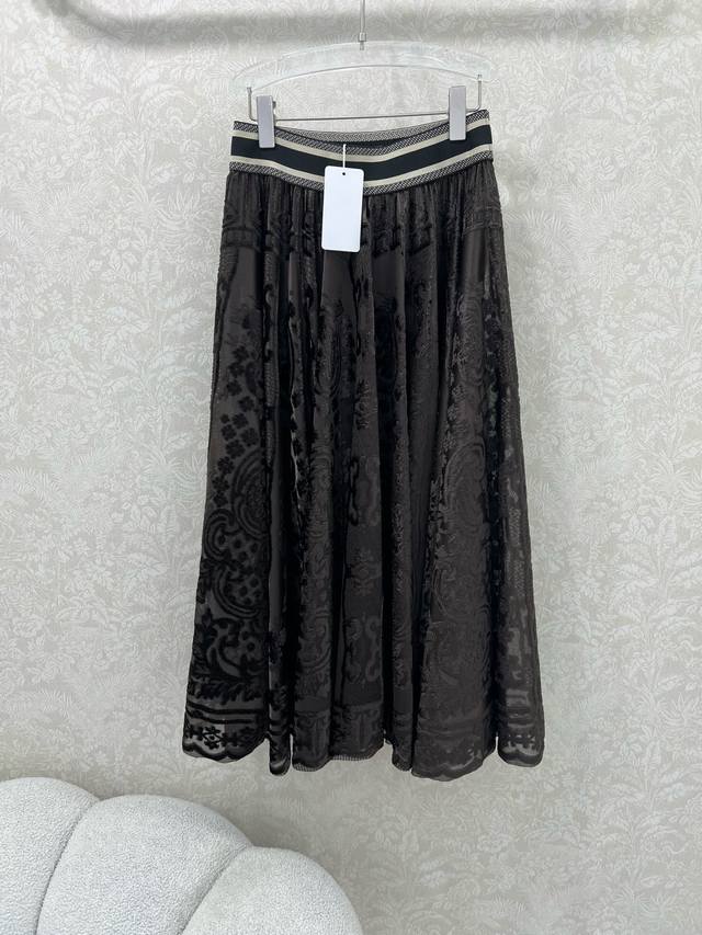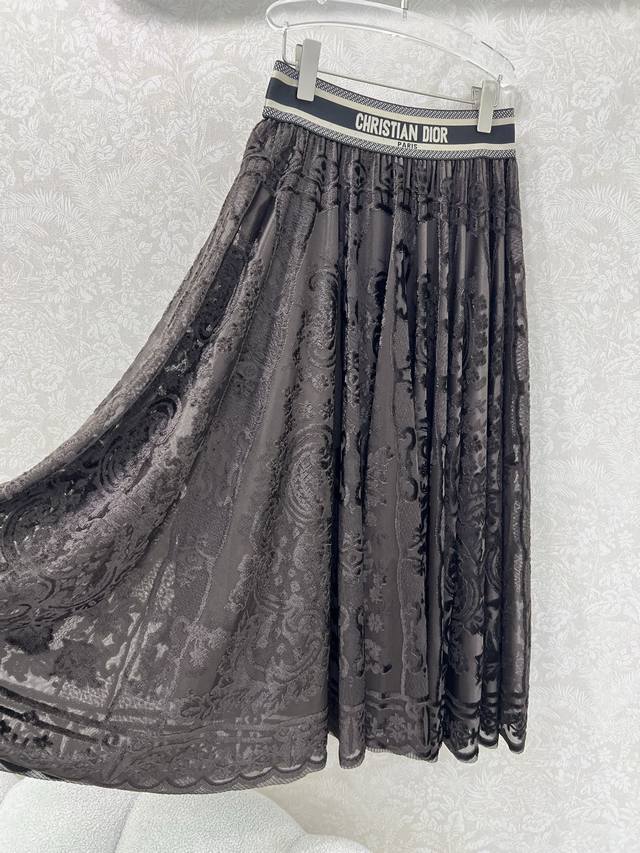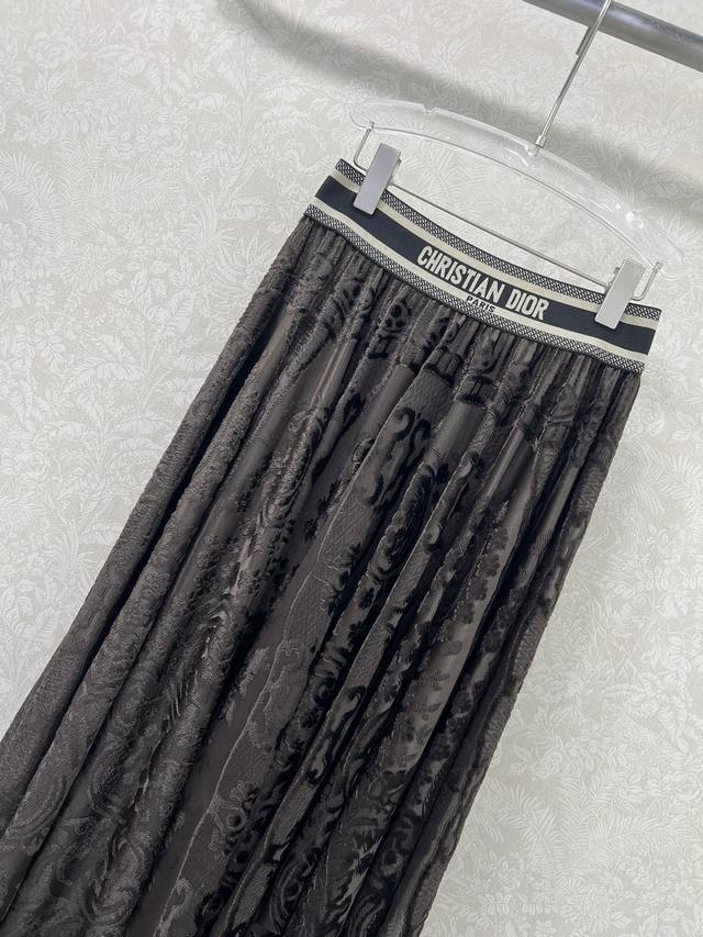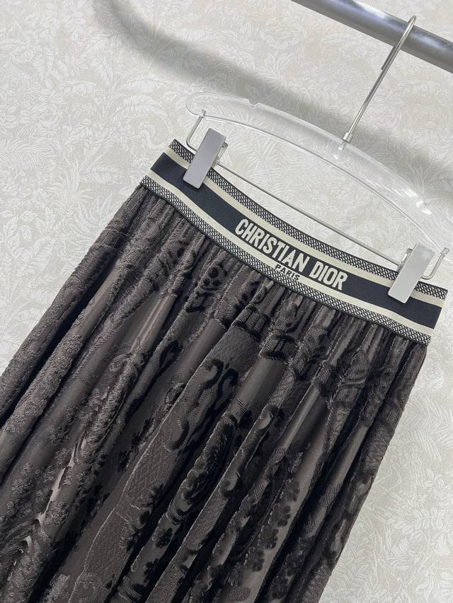 Dio*25 New Ribbon Lace Midi Skirt Custom Yb Imported lace flocked material, textured and lustrous, comfortable and skin-friendly. The signature letter ribbon at the waist adds adjustment and decoration, showcasing the brand's style. The entire skirt is adorned with lace fabric and flocked embroidery design, complemented by an outward-flaring umbrella-shaped pleated hem. This design successfully slims the figure, conceals the hips, and flatters the legs. The relaxed fit adds a sense of style and dimension. The high-waisted midi skirt is easy to match and stylish. Available in 3 colors and 4 sizes: S, M, L, X, D, D.