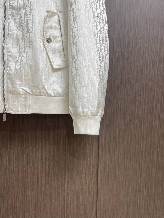 Dior all-over jacquard jacket with a subtle pattern, featuring an Oblique print quilted effect in the jacquard technical fabric . This quilted jacket is a nod to Dior's classic logo launched in 1967. Crafted from jacquard technical fabric, it features a wide-spread collar and snap closure. The modern silhouette can be paired with various pieces this season to elevate a casual look. Sizes: M-3XL