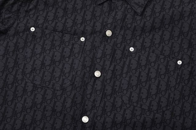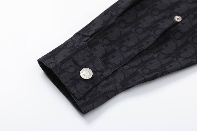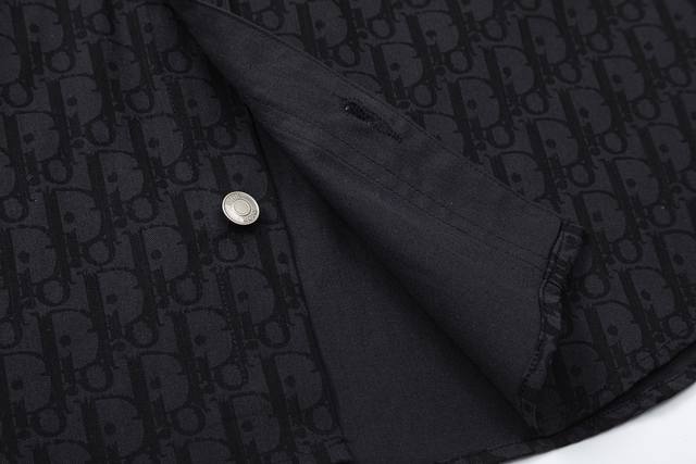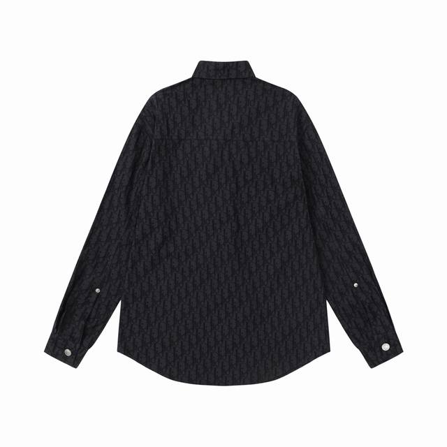 Dior classic best-selling all-over subtle jacquard logo print shirt with custom hardware, workwear aesthetics, slim fit, unisex casual shirt. Color: As shown. Size: Xs, S, M, L.