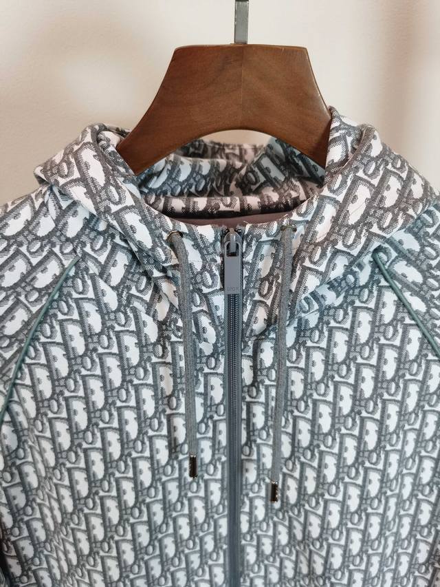 Dior High-Quality Replica Dior 2025 Fall/Winter All-Over Dior Monogram Logo Jacquard Long-Sleeve Jacket, Navy Blue, Jacquard Letter Lapel, Classic Logo Design, Cotton, Custom High-Quality Hardware, Comfortable to Wear, Sizes: 48-56