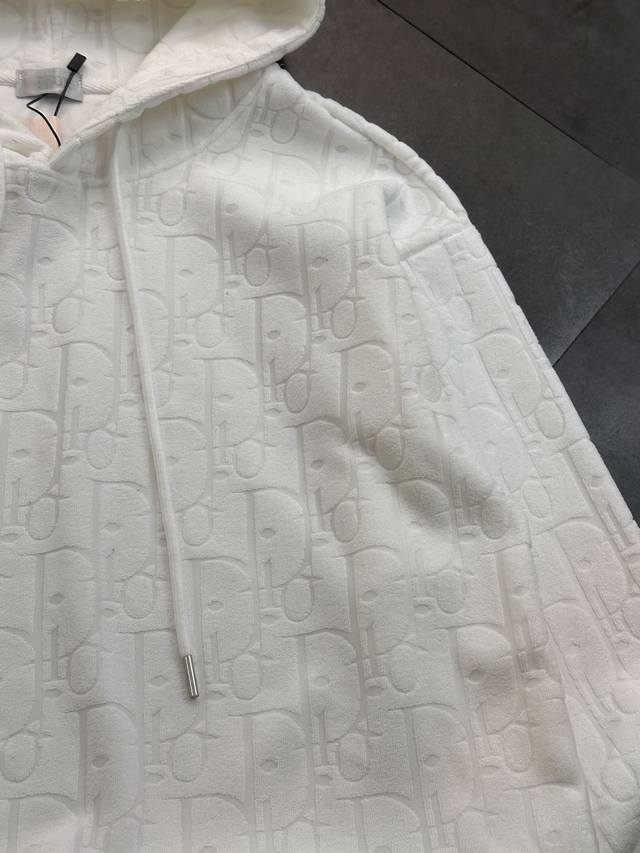 Dior logo all-over hooded sweatshirt for couples! Made of pure cotton, a brand-specific cotton, with clear texture and a premium feel. Dyed in the same vat, 1x1 color-matching precision pure cotton ribbing. Perfect for layering. A must-have! Highly recommended! All accessories are original custom-made! 100% high-quality craftsmanship, meticulous three-dimensional tailoring, loose fit, versatile for all body types. Even small sizes are flattering. Highly recommended! Classic brand logo design, high-end and textured! The overall workmanship and materials are exquisite, reflecting the brand's quality control! A true high-end factory! Colors: Black, White. Sizes: ML, XL, XL. Bust: 106, 108, 112, 114. Shoulder: 40, 41, 42, 43. Length: 67, 69, 71, 73.