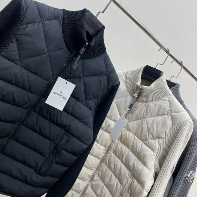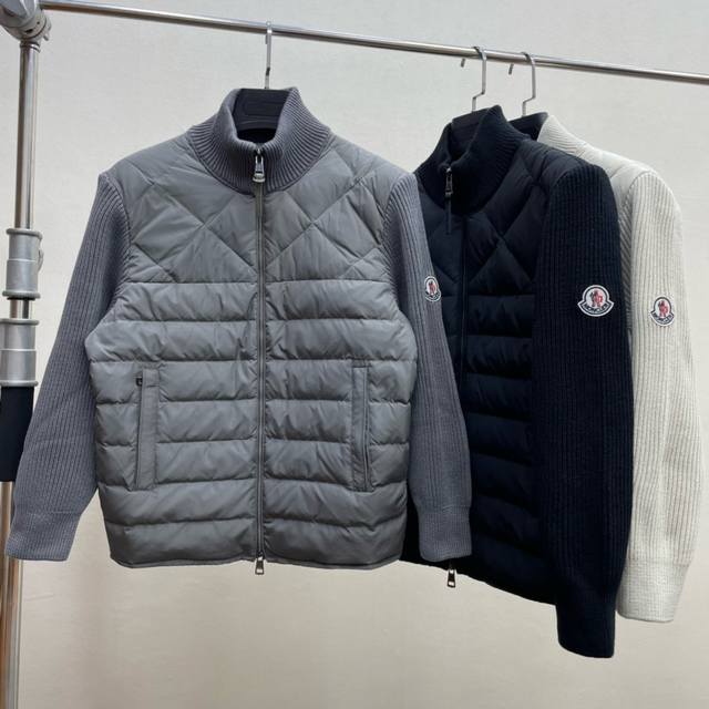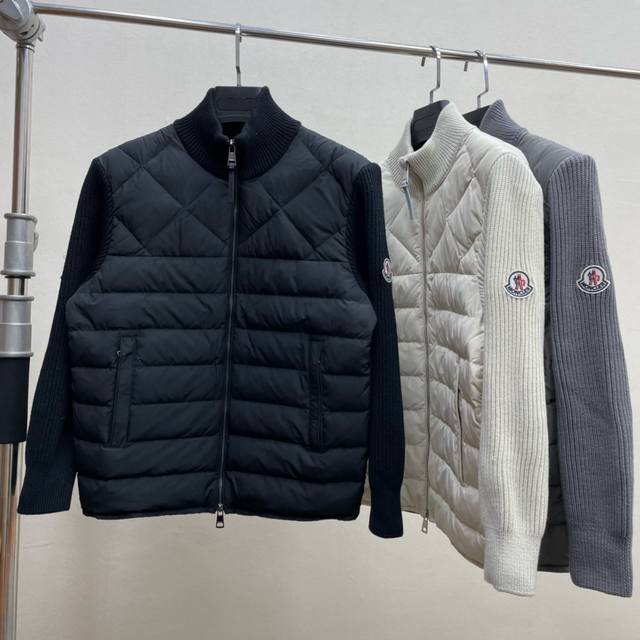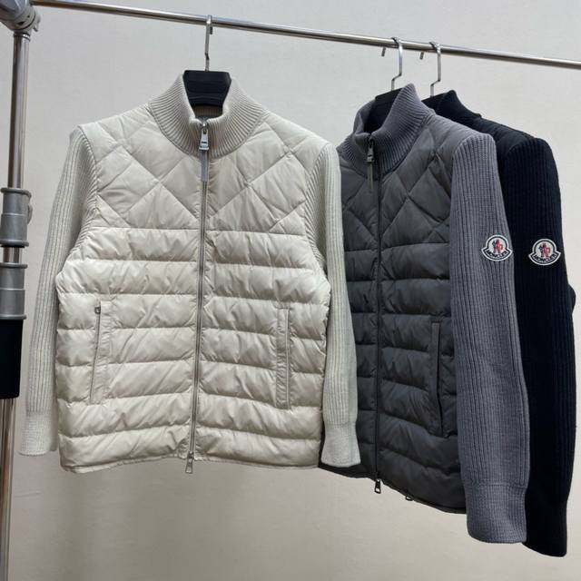 Exclusive online! Moncler 2025 Autumn/Winter New Arrival! Unisex Knitted Patchwork Down Jacket Zipper Cardigan! Amazing! Available at
