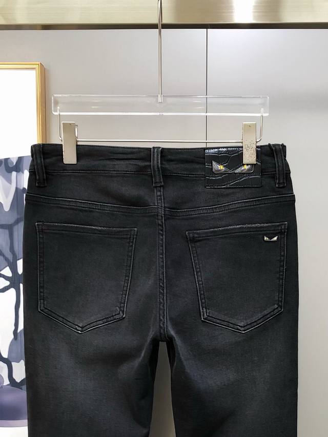 Fd Fendi 2025 Early Autumn New Men's Slim Fit Jeans Official Website Synchronized Simple Fashion Hot Item High-End Custom Original Quality Back Pocket Embossed Cute Eye Logo Design Custom Imported Denim Washed Denim Pure Cotton Fabric Original Accessories Exquisite Workmanship Cool and Energetic Full of Softness, Delicate Comfortable and Breathable Commuter Style High Matching Rate and Durability Excellent Store Quality Super Handsome and Stylish on the Body Sizes: 28-38 Elastic Available 35, No 37 Ships the Next Day