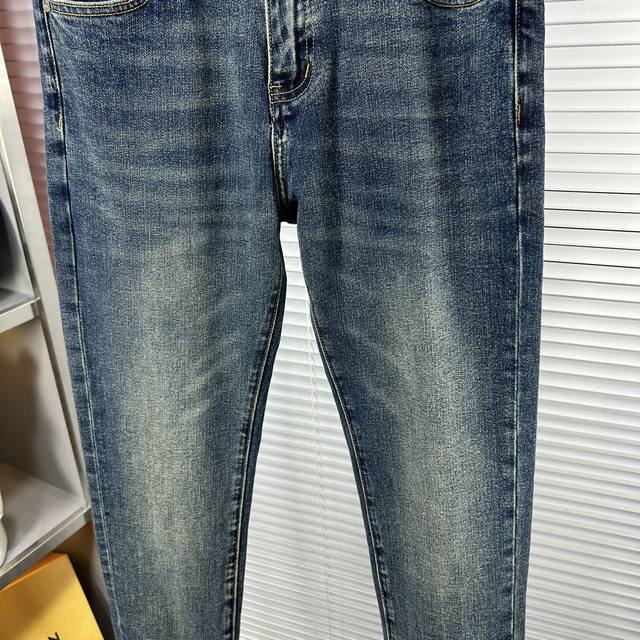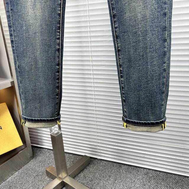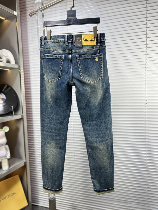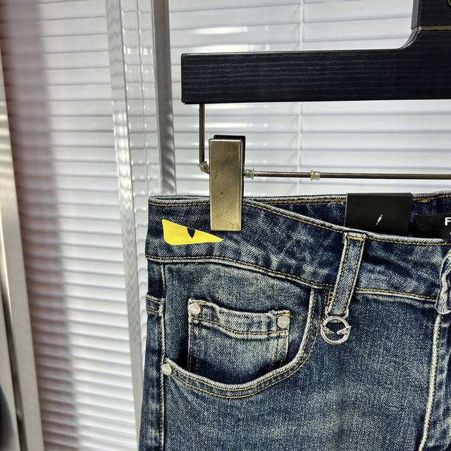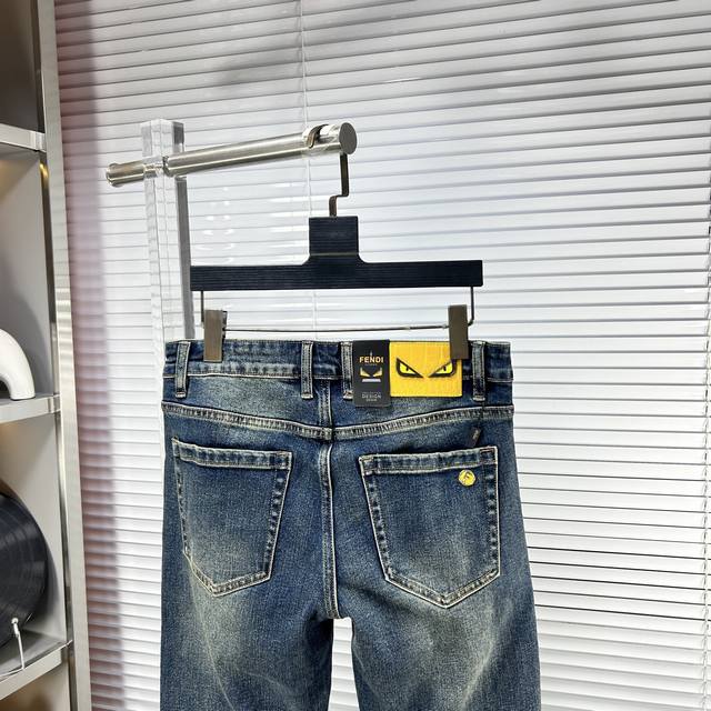 Fend* Fendi Ss25 Autumn/Winter New Men's Jeans - Excellent elasticity fabric. Exclusively available, synchronized with the official website. Stylish and elegant, made with original color yeast wash process, selected imported heavyweight denim fabric, adorned with boutique hardware, genuine leather tag, and exquisite stitching. A must-have. Sizes M: 29-38 (No 37