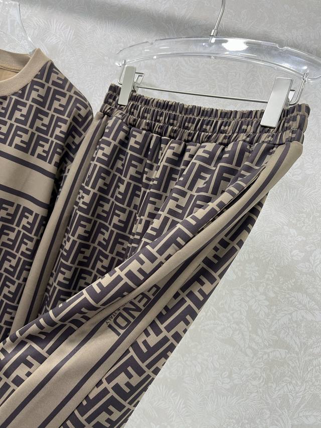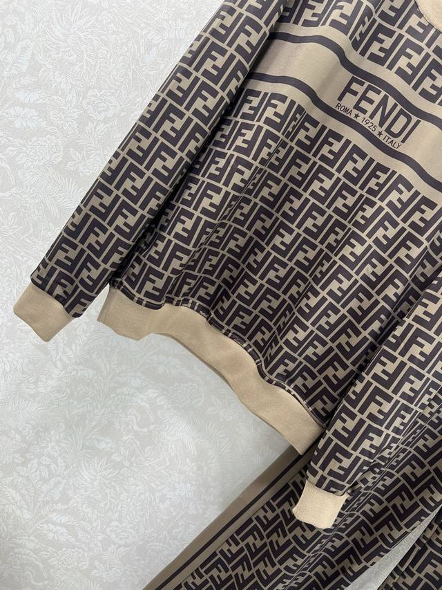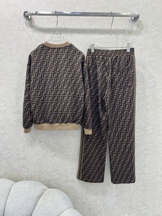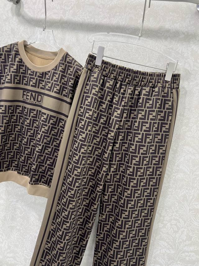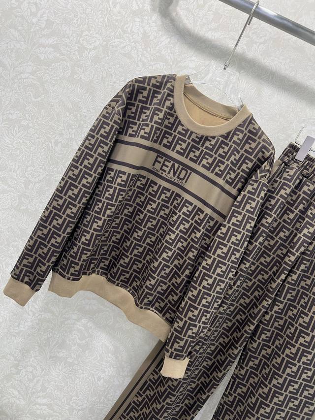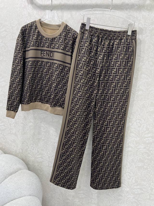 Fend*25 New Casual Sportswear Set for Sale. The set includes a round neck, long-sleeved pullover, and wide-leg pants. The entire set features a double-F monogram logo print. The classic letter stripes on the top are absolutely gorgeous! Casual, retro, and stylish, the simple color-blocked silhouette has a sporty feel. A must-have for lazy people! Instantly achieve a sweet, cool, and rebellious girlish look. Perfect for everyday casual wear or commuting. The tapered pants perfectly accentuate the casual and sporty vibe. High-quality replica. Available in single color, sizes S, M, L, D, D.