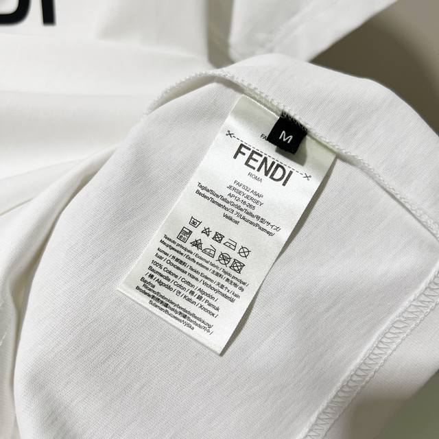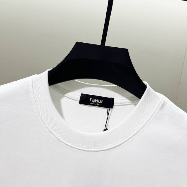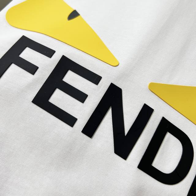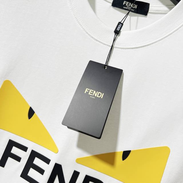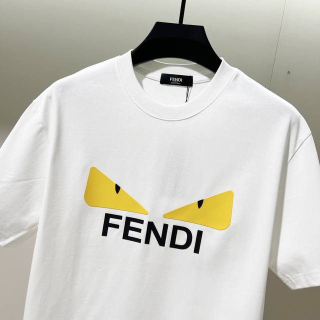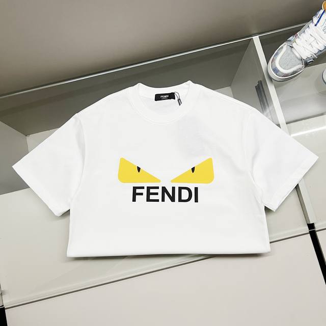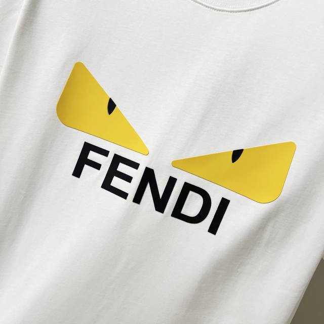 Fendi 300g Crew Neck Pure Cotton Short Sleeve T-Shirt, Thick 3D Silicone Monster Eyes Letter Logo, Official High-Quality Version, Stylish, Versatile, Trendy, Pure Original Quality Fabric, Complete with Hangtag, Neck Label, Washing Label, and Three Tags, Colors: Black, White, Sizes: S-XL
