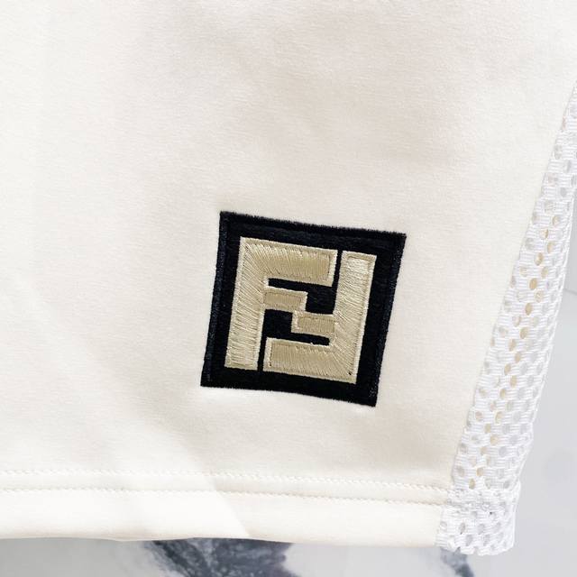 Fendi Custom Space Cotton Fabric Shorts, Double Ff Embroidered Letter Logo, Side Mesh Panels, Official High-Quality Version, Stylish, Versatile, Trendy, Pure Original Quality Fabric, Complete with Hangtag, Neck Label, Washing Label, and Three Tags, Colors: Black, Apricot, Sizes: XS-L