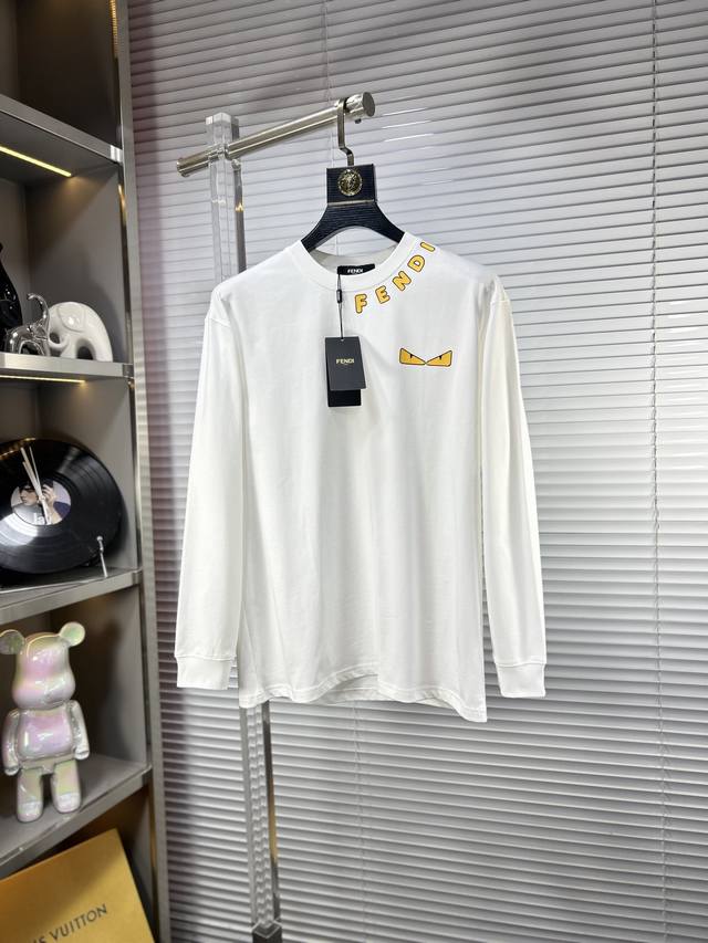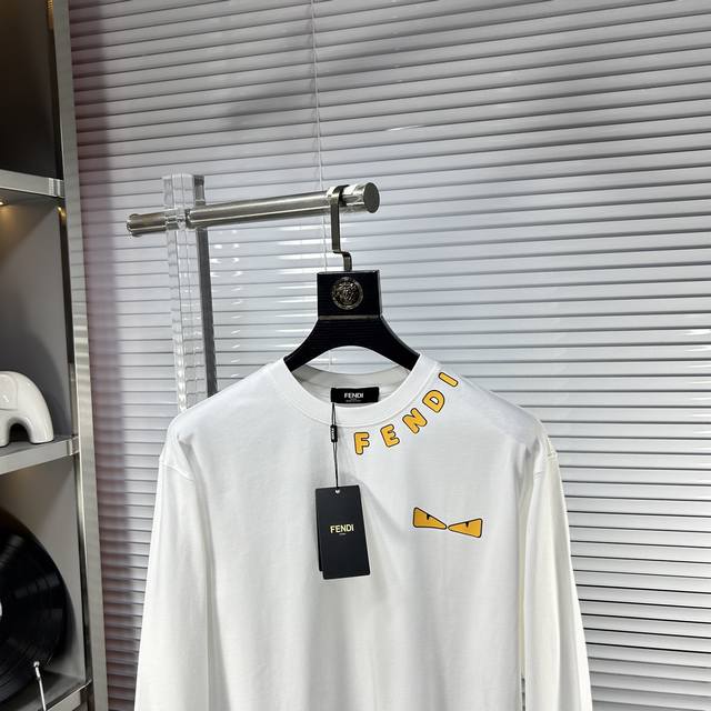 Fend*Ss25 Autumn/Winter New Arrival Crew Neck Long Sleeve T-Shirt with Raised Chest Graphic - A Must-Have for Fashionistas! Made with custom 280g high-weight cotton fabric, it's soft to the touch and very skin-friendly. The smart letter logo on the chest is exquisite and stylish, exuding a high-end feel in its simplicity. The casual fit is super youthful. Sizes: M-Xxxl