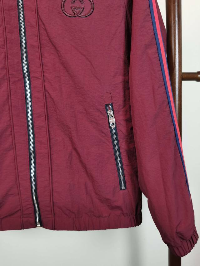 Gucci 2025 Fall/Winter New Men's Reversible Logo Jacket, a stylish and casual high-end version! Made with custom-made boutique fabric for superior breathability and comfort, impeccable details, and brand elements, reflecting high quality. Soft and delicate to the touch! A relaxed cut, with a fantastic fit! Colors: Red, Gray, Black, Blue Sizes: M-3XL