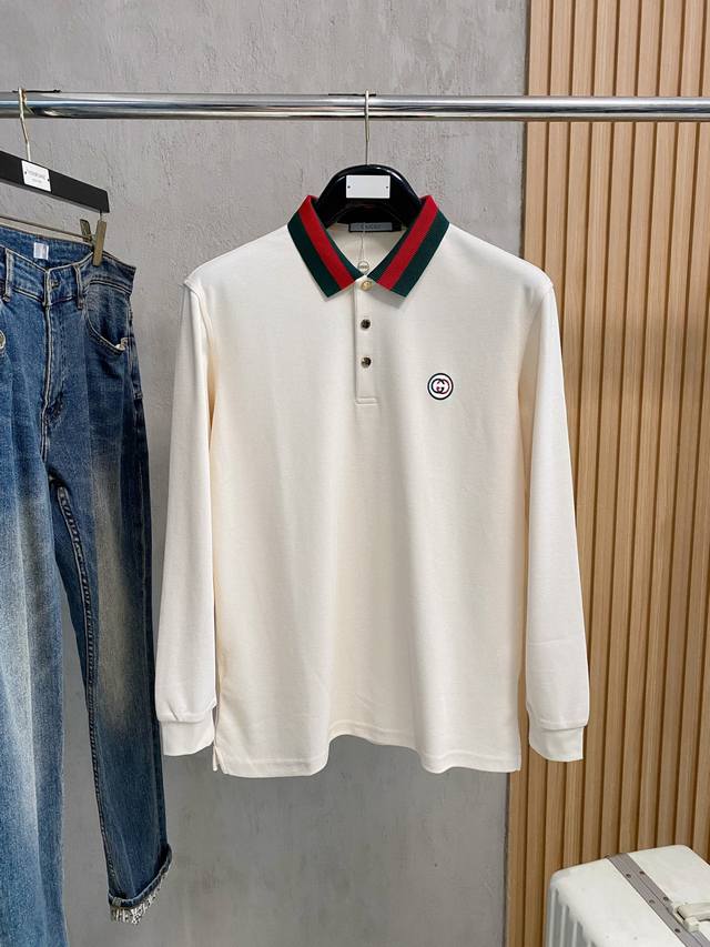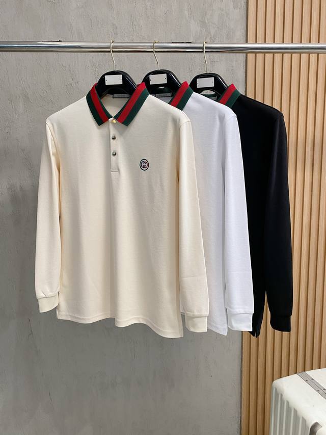 Gucci Exclusive New Original Men's Polo Long-Sleeve Cotton High-End Customized High-Version Fashionable and Versatile Bestseller Original Imported Pure Cotton Fabric, Logo Pattern Design on Chest, Super Soft and Delicate Feel, Skin-Friendly and Comfortable to Wear, High-End Boutique Factory, Exquisite Workmanship, Excellent Fit, Must-Have Item for Men, Sizes M-4XL, Multiple Colors