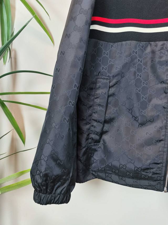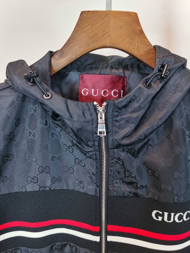 Gucci top-quality official website style, complete with all three tags! 2025 Fall/Winter new men's jacket, fashionable and casual high-end version! Custom-made fabric with impeccable details, all-over brand elements, reflecting high quality. Delicate and soft to the touch! Presents a casual cut, the fit is superb! Color: Black Sizes: M-3XL