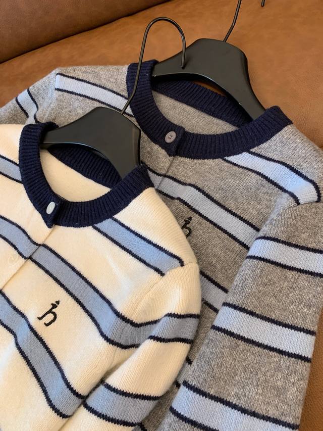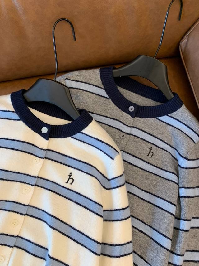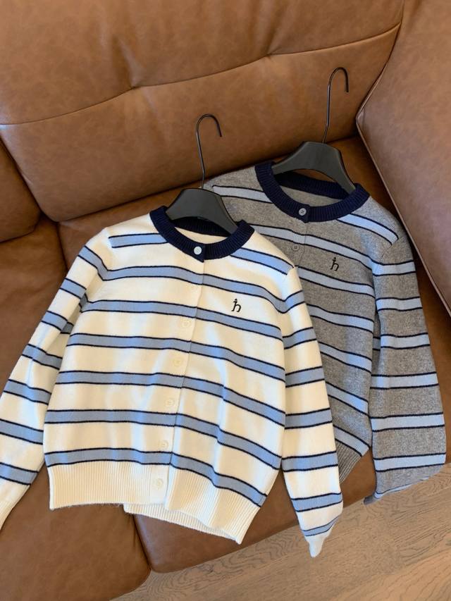 Haggis Puppy Autumn Knit Cardigan, with a delicate texture and a slightly loose design, neither too tight nor too oversized, achieving a perfect balance between relaxed and neat. Master the basic styling rules of cardigans, and you can handle both casual outings and commuting to the office! Color: White Stripes, Gray Stripes Size: S, M, L Shoulder Width: 38, 40, 42 Sleeve Length: 57, 59, 61 Chest: 102, 104, 106 Length: 51, 53, 55