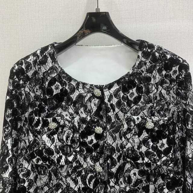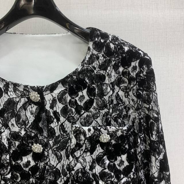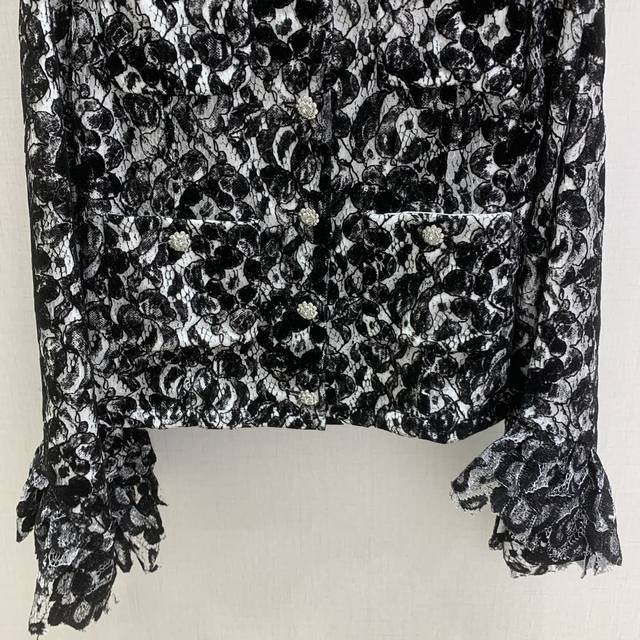 Highly recommend Chanel *2025 Early Autumn Collection New French Court Style Chanel-style Round Neck Lace Shirt and Lace Pants, sold separately, high-end custom lace fabric, custom hardware accessories, lace trim design on cuffs. One set for double the elegance. Available in one color, sizes S, M, L. High-quality outerwear and pants.