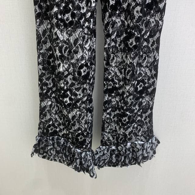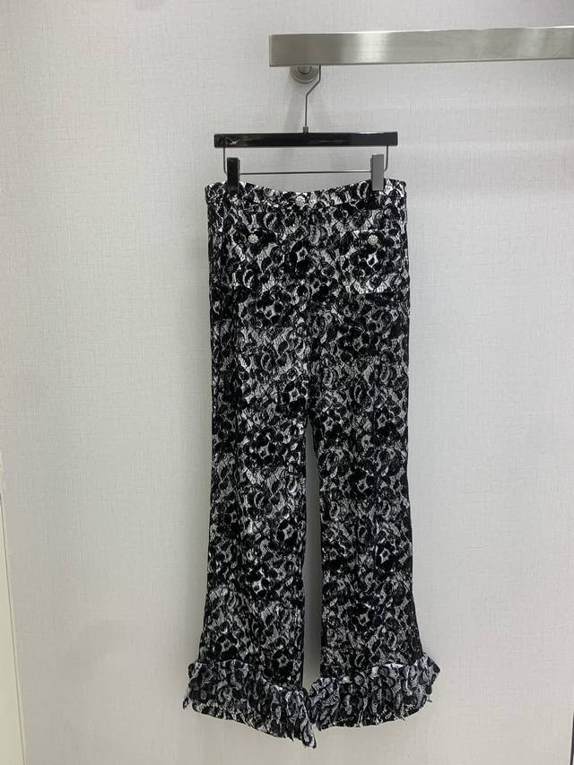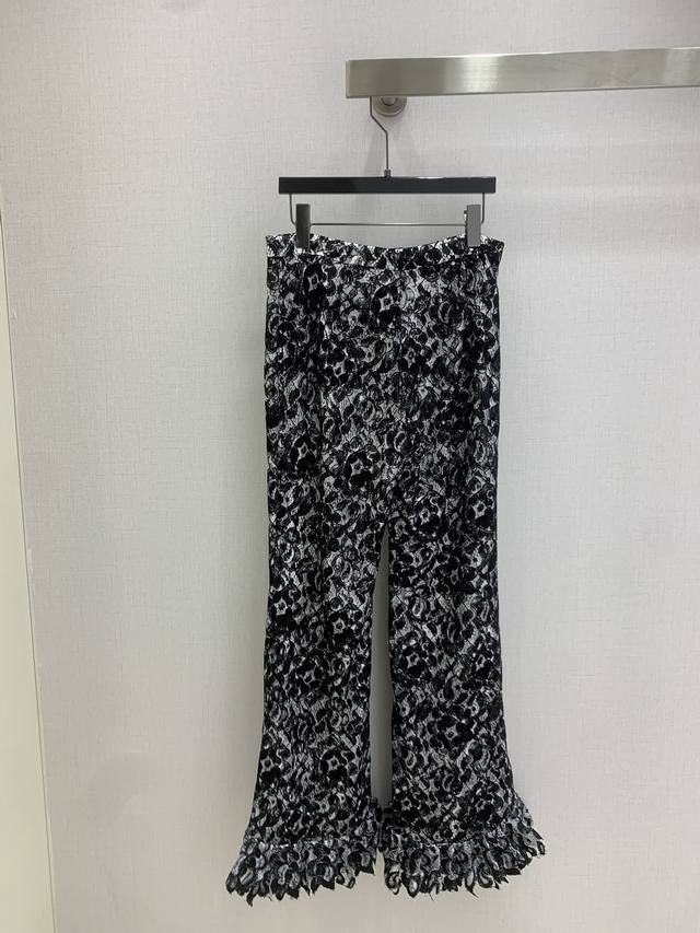 Highly recommend Chanel *2025 Early Autumn Collection New French Court Style Chanel-style Round Neck Lace Shirt and Lace Pants, sold separately, high-end custom lace fabric, custom hardware accessories, lace trim design on cuffs. One set for double the elegance. Available in one color, sizes S, M, L. High-quality outerwear and pants.