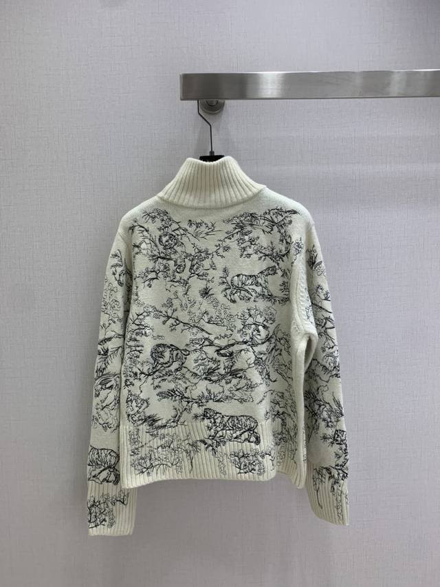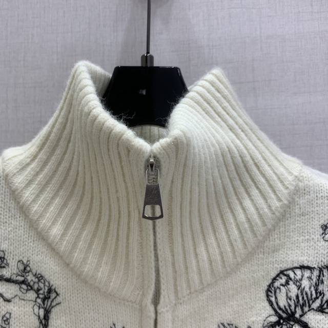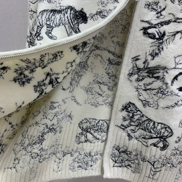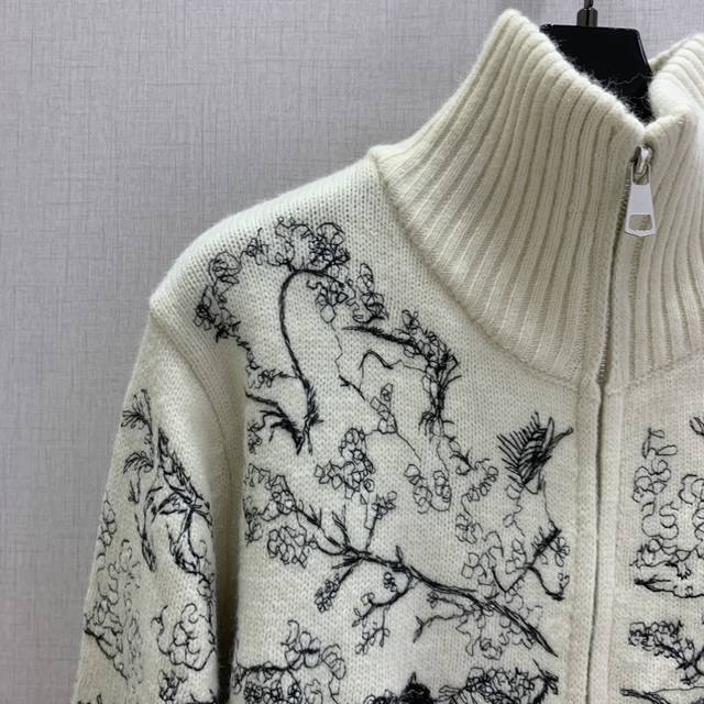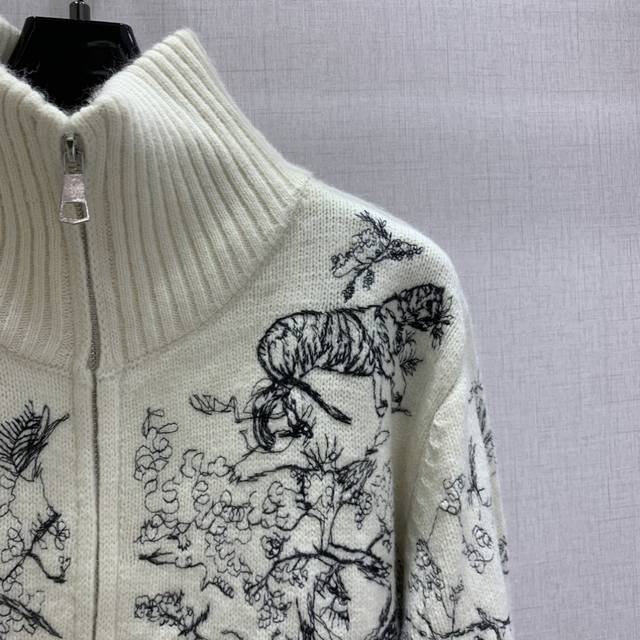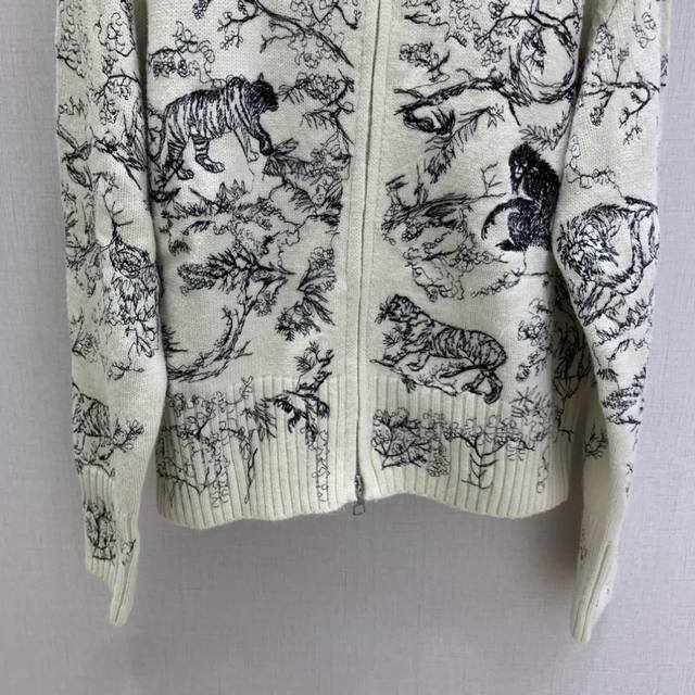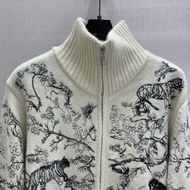 Highly recommend Dio* 2025 Autumn/Winter New Embroidered Stand Collar Zipper Cardigan! Custom Yb wool-cotton material with animal jungle pattern embroidery texture. The overall look is high-end and textured, exuding elegance. The ribbed cuffs are very sophisticated, showcasing classic elements and detailed quality! Available in 2 colors, sizes S, M, L, D.