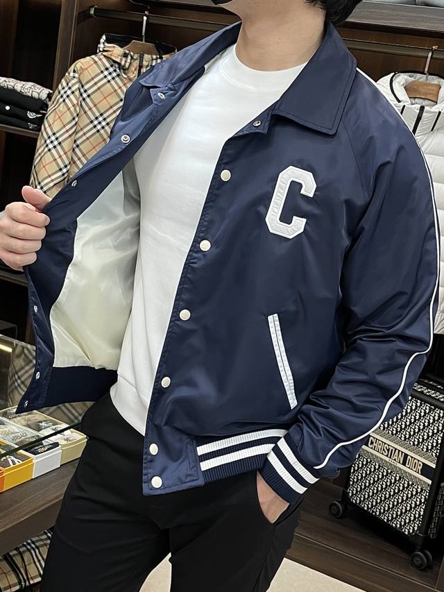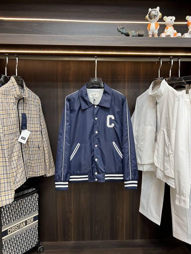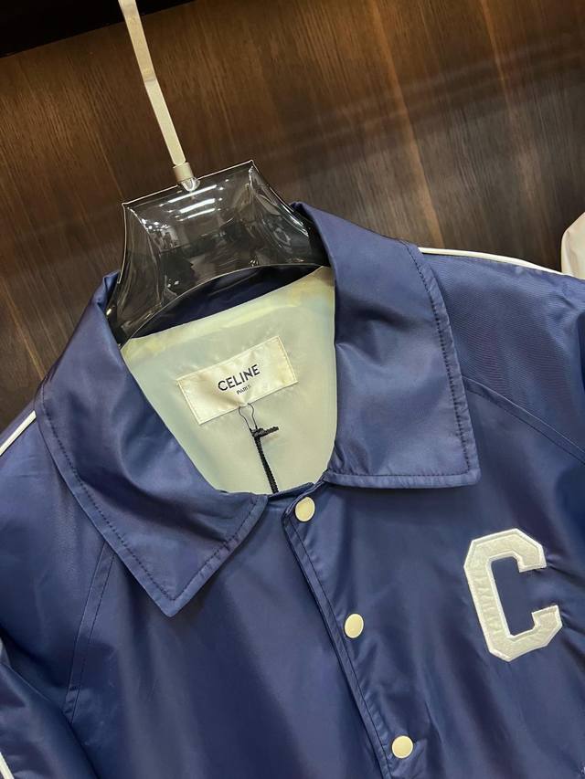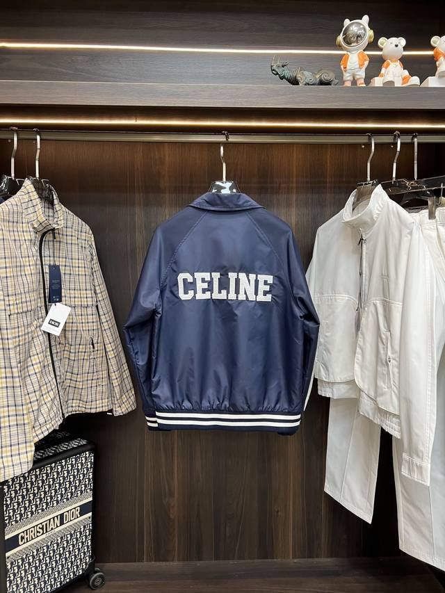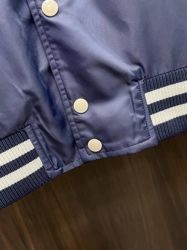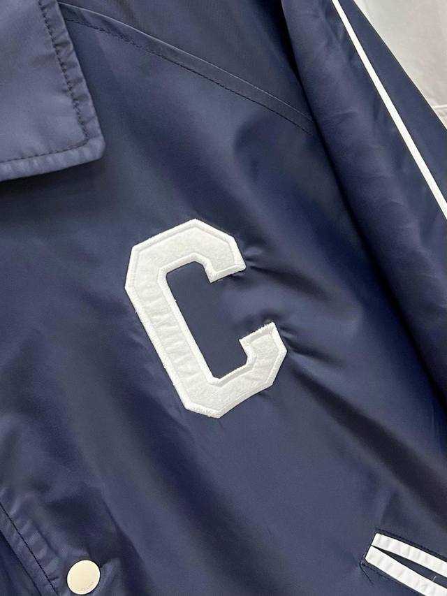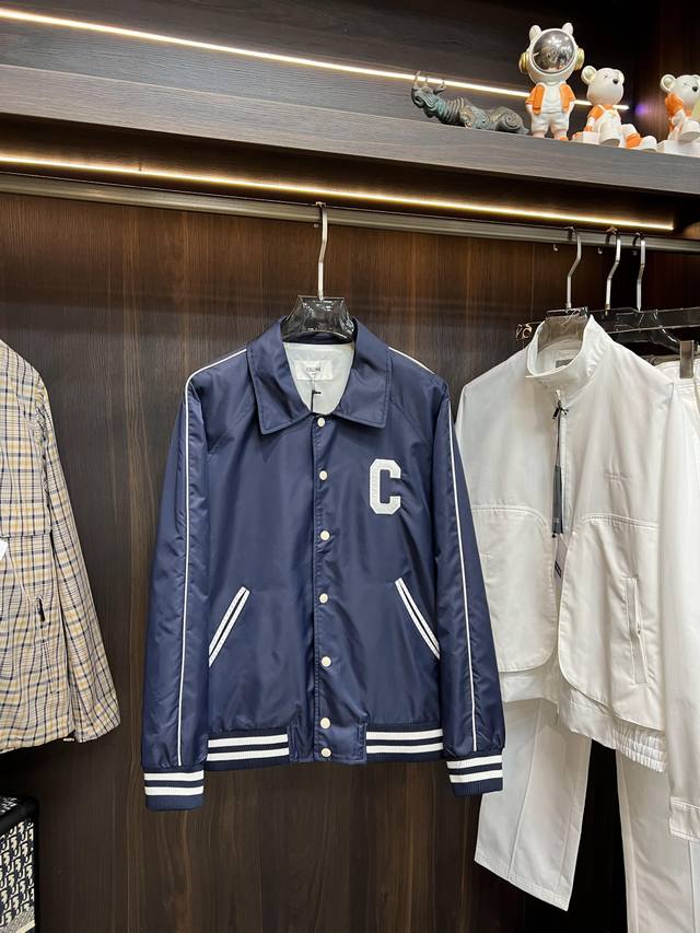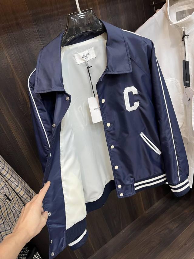 Highly recommends Celine's new 25Ss preppy baseball jacket. Made from blue satin nylon fabric, this jacket features Celine's exclusive embroidery on the front and back, metal-lettered snap closure, and contrasting striped ribbed hem and cuffs. The design is very novel and unique, easily paired with T-shirts and jeans. Unisex, a must-have! Highly recommended! Sizes: 46 48 50 52 H2025