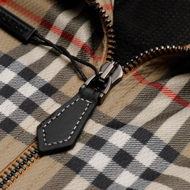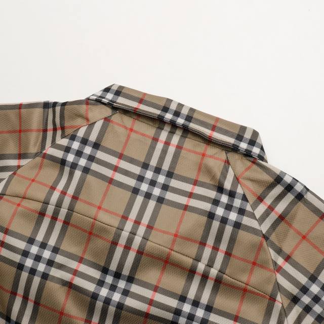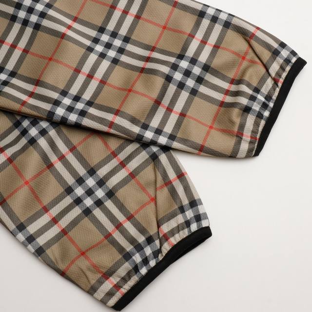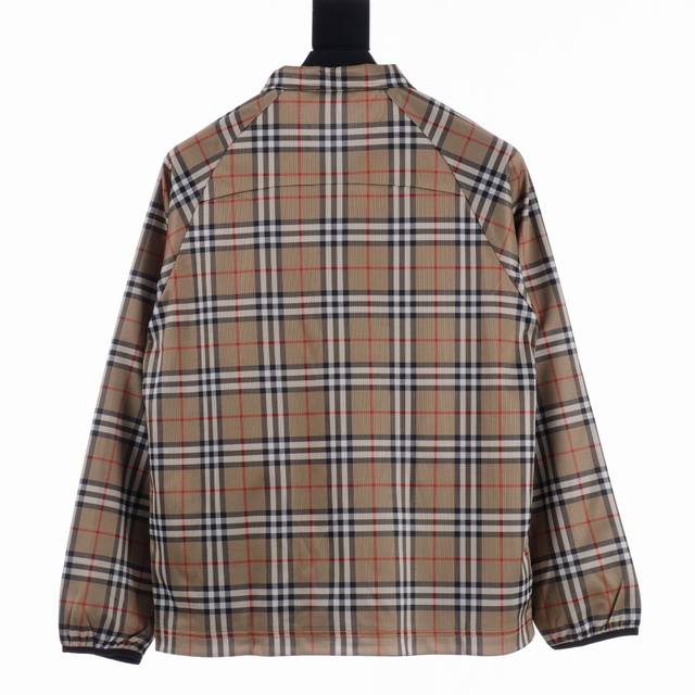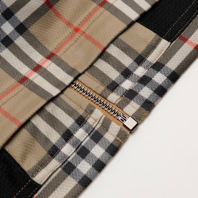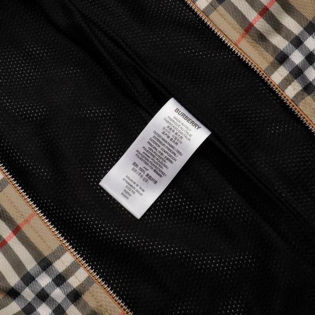 High-quality Burberry functional plaid stand-collar jacket. Original Hong Kong purchase price: 11,500. Made with two fabric processes, completely disassembled and analyzed. Custom-woven 100% cotton functional fabric, stretchy and comfortable. Digitally printed plaid pattern, lining with bird's-eye fabric. Time-consuming and labor-intensive cutting, long and narrow design, due to extensive matching of stripes and plaids on the body, high knit elasticity. The garment 100% replicates all alignment issues. The cutting and finishing of each piece incurred huge labor and time costs. The garment has two layers of fabric, resulting in significant fabric consumption. Note the front and back alignment, sleeve alignment. The side pockets also maintain matching stripes and plaids, full of details, replicating the original quality. The cuffs are bound with a lining, replicating the original. The zipper is custom-made with a genuine leather pull.