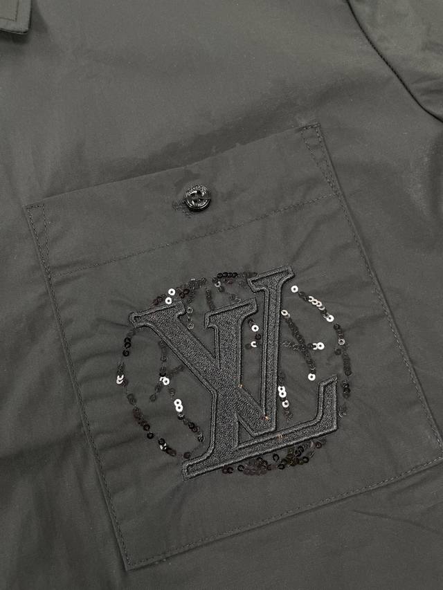 High-quality Louis Vuitton 25Ss new short-sleeved shirt with sequined embroidered logo and chest pocket. Size: Xs-L.