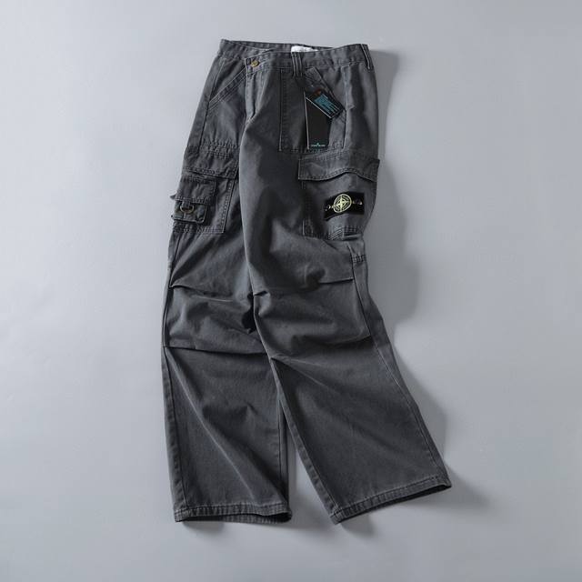 #Stone Island 2025 New Retro Washed Distressed High Street Outdoor Casual Cargo Pants, Long Pants, Paratrooper Pants