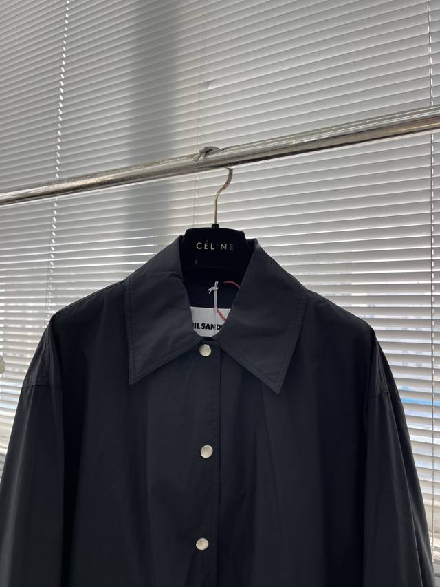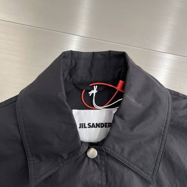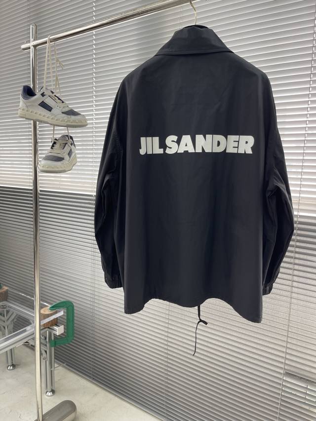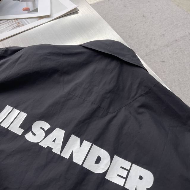 Jil Sander Printed Jacket. Made with custom-made silky cotton, this jacket boasts a structured and comfortable feel against the skin. The pure black base is deep and sophisticated, while the front features a clean fit, meticulously crafted for a clean yet dynamic look. The Jil Sander print on the back subtly blooms against the deep black background, making it highly recognizable and injecting a touch of dynamism and mystery, like a glimmer of light in the darkness. Its versatility perfectly embodies the true essence of high-end fashion. The jacket uses plastisol printing, which involves three modifications to the film screen. The pattern is printed on the fabric using liquid plastisol and baked to fix the print. Imported machine embroidery technology utilizes advanced computer control systems and precision mechanical components to achieve high precision in the brand logo embroidery, resulting in smooth and delicate lines. A pre-set template guides the precise position, shape, and size of the opening, ensuring high-quality results. Sizes: 32, 34, 36, 38. Length...