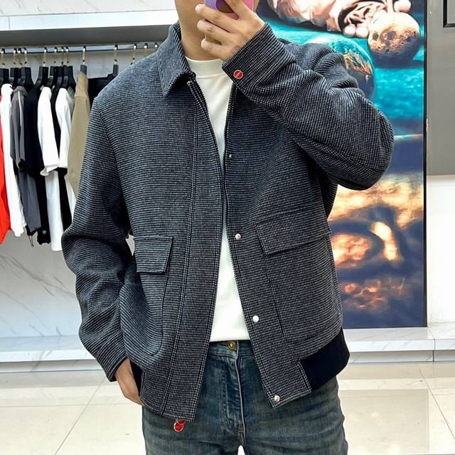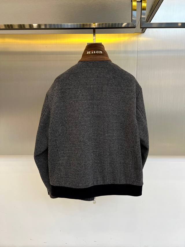 Kiton, 2025 Autumn/Winter New Arrival - Lapel Jacket. Slightly loose fit, classic lapel jacket design with slightly dropped shoulders, simple and elegant. Made from select textured double-faced wool fabric, crafted with exquisite handcraftsmanship. The relaxed yet comfortable fit is versatile and easy to match. Sizes 48-56. Model is 173cm tall and weighs 143kg, wearing size 50 (