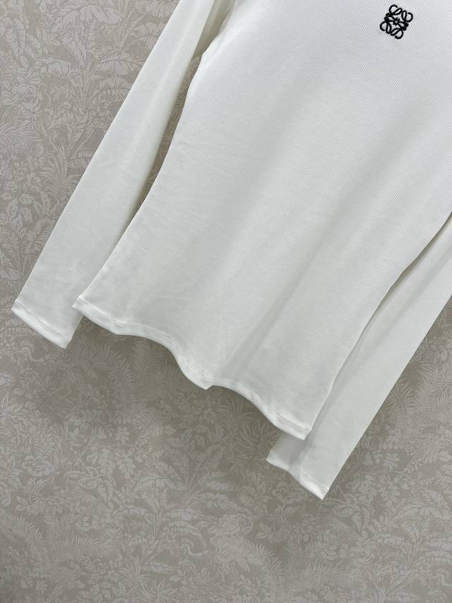 Loew*25 New Arrival Long-Sleeved Base Layer Top, Custom Made with Imported Tencel Ribbed Fabric, Delicate Texture, Comfortable to Wear. Embroidered Logo on Chest Highlights Brand Style. Elastic Material Creates a Slimming Visual Effect. Collar and Chest Logo Instantly Transform into a Fashion Item, Showcasing High-End Style. Perfect for Wear Alone or Layering, Stylish, Youthful, and Chic. Custom Fabrics and Accessories, High-Quality Version, 2 Colors, 3 Sizes (S, M, L, D, D)